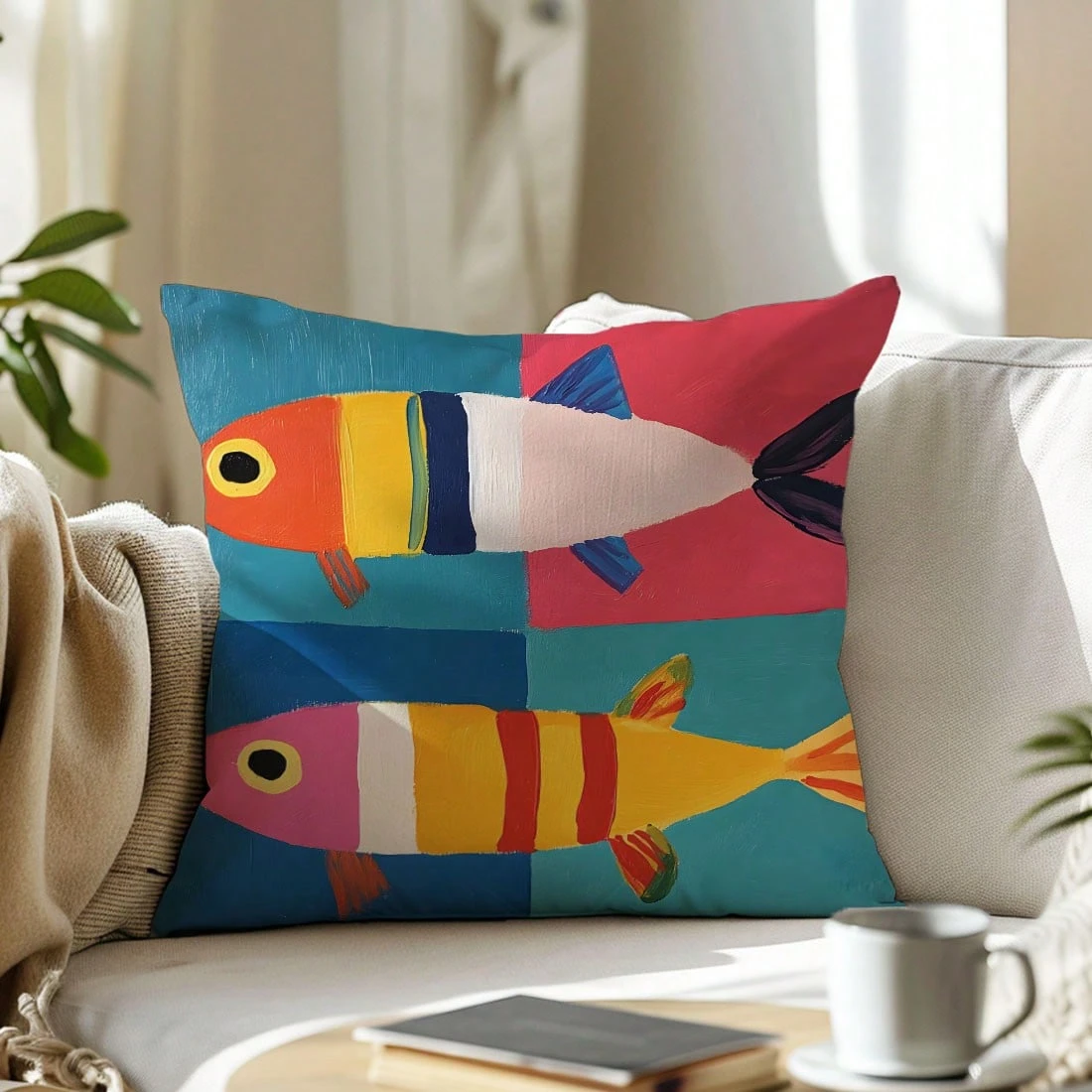 1 db egyoldalas nyomtatott 17,7×17,7/19,68×19,68 hüvelykes színes geometrikus halmintás dekoratív díszpárnahuzat, lakberendezési párnahuzat nappaliba, kanapéra, hálószobába, házavató ajándék