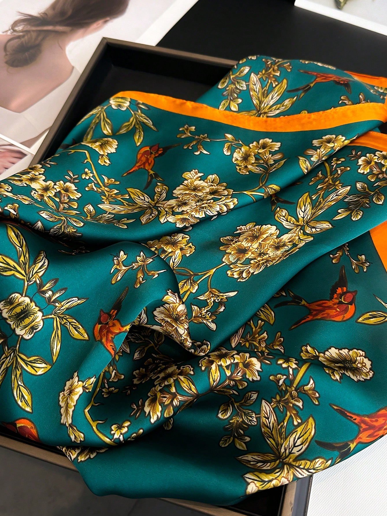 1 db-os luxus és divatos virágmintás utánzatú selyem szatén négyzet alakú sál fejpántos bandana, sokoldalú női hajpántos kendő turizmushoz, nyaraláshoz, szabadidőhöz és szabadidőhöz, fejkendő, mindennapi ingázáshoz, kis gallérral ruhához