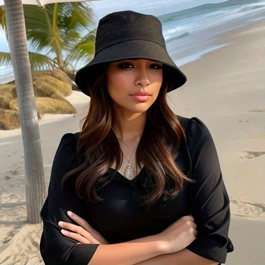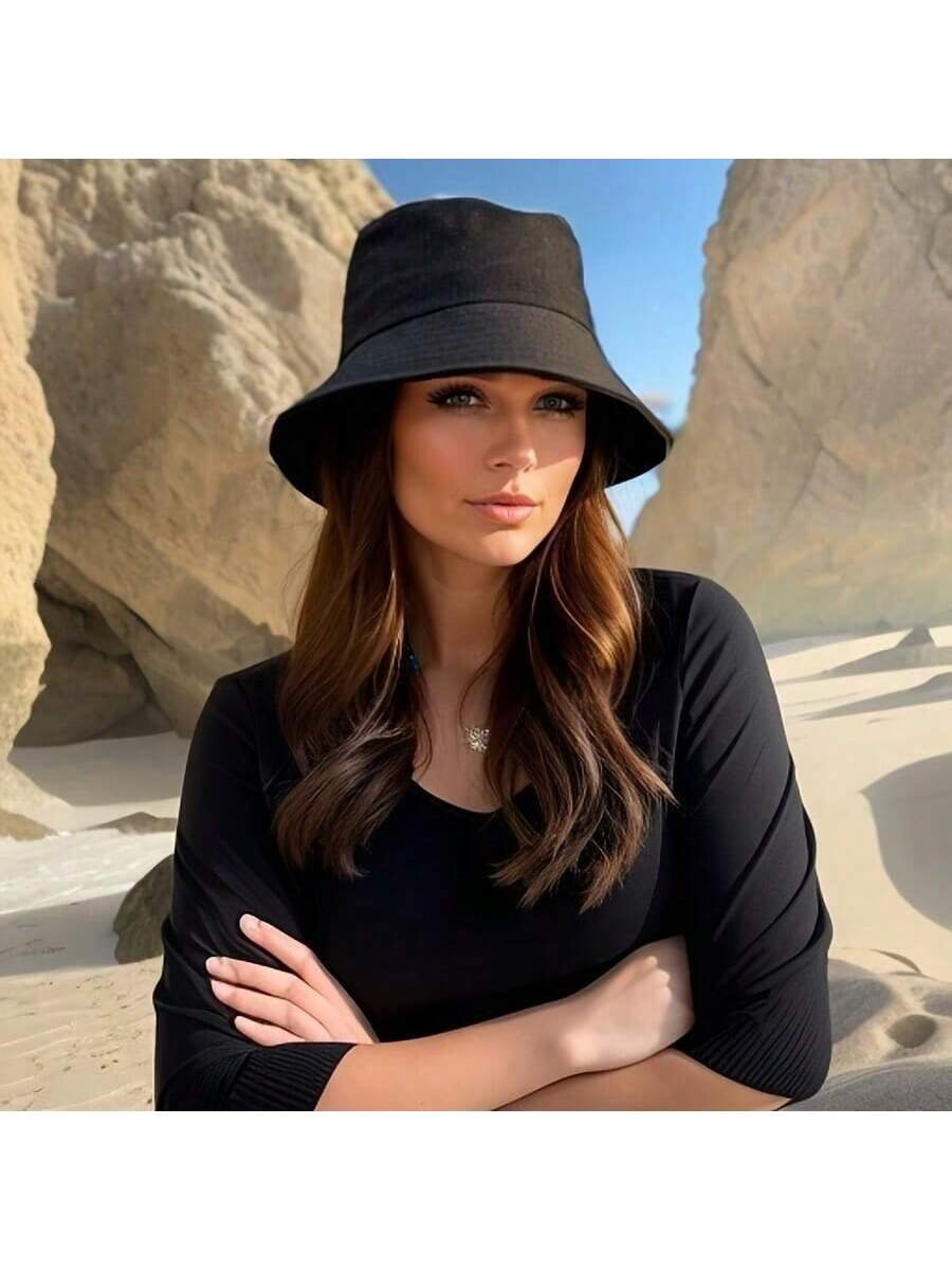 1 db-os női egyszínű fekete alkalmi kalap, napvédő kültéri sportokhoz, utazási napkalap