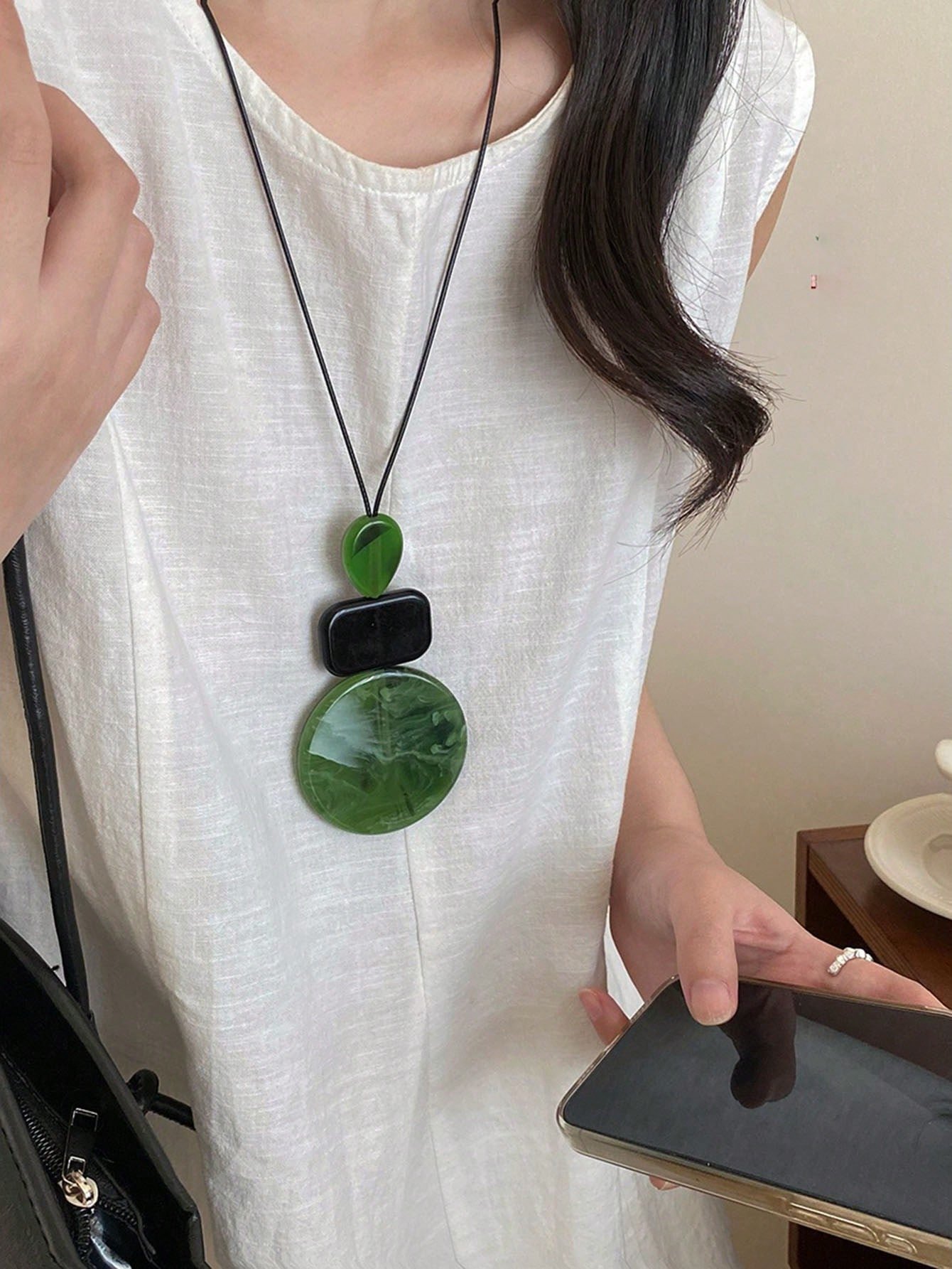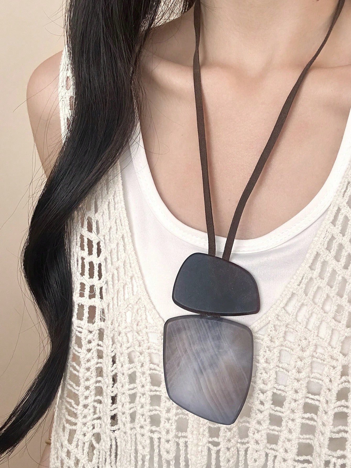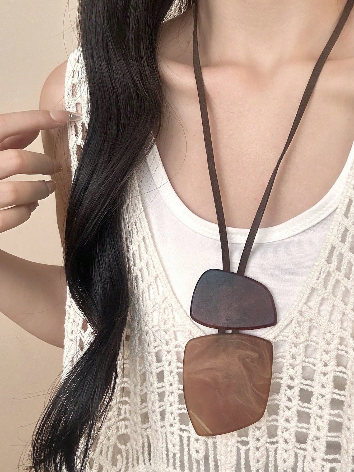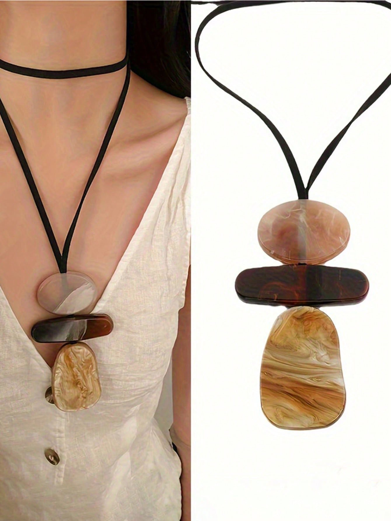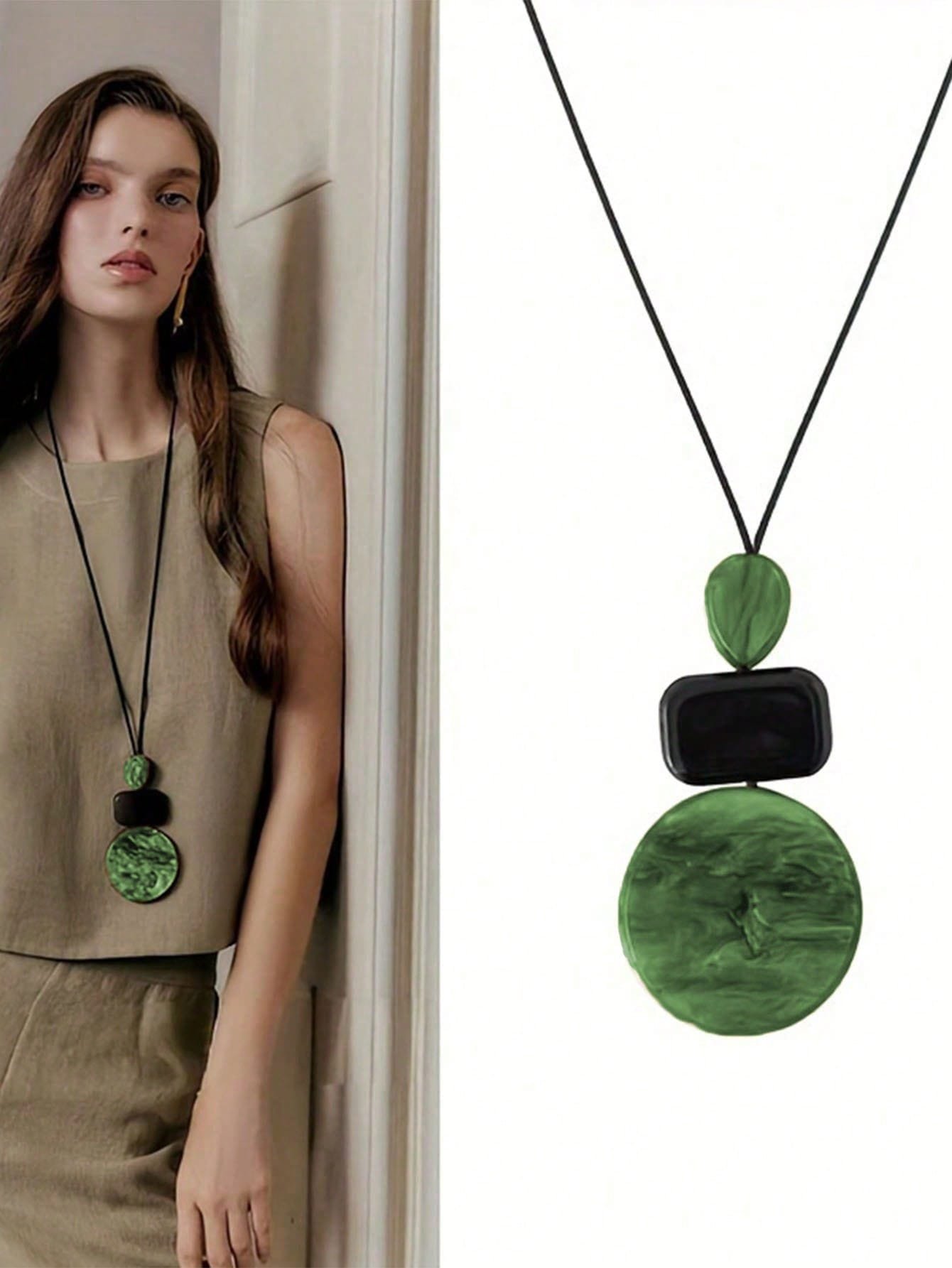 1 db-os vintage Millefiori bőr és gyanta batikolt ovális és téglalap alakú nyaklánc nőknek
