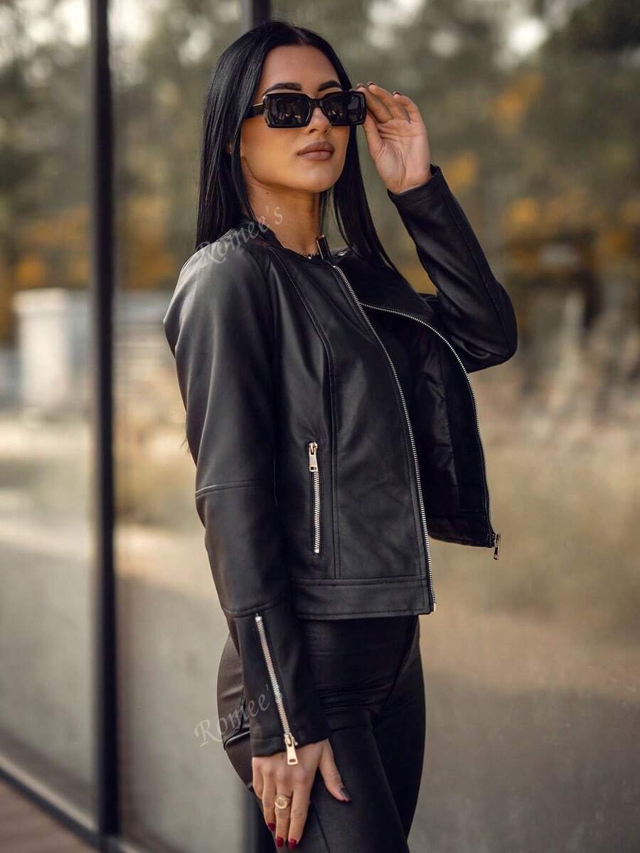 Damska Skórzana Ramoneska Prosty Zamek Błyskawiczny Kieszeń