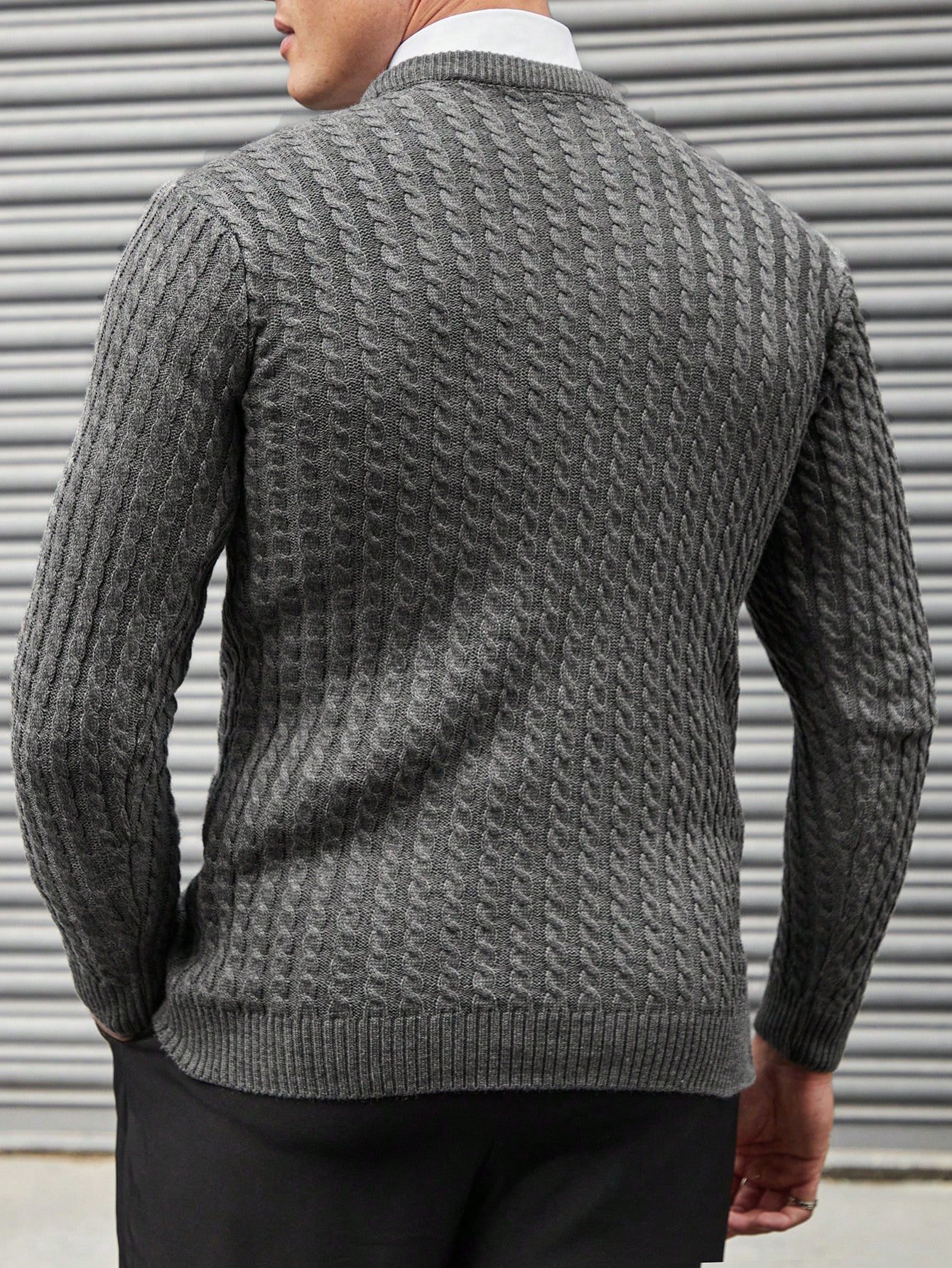 Férfi tömör kábellel kötött pulóver ing nélkül