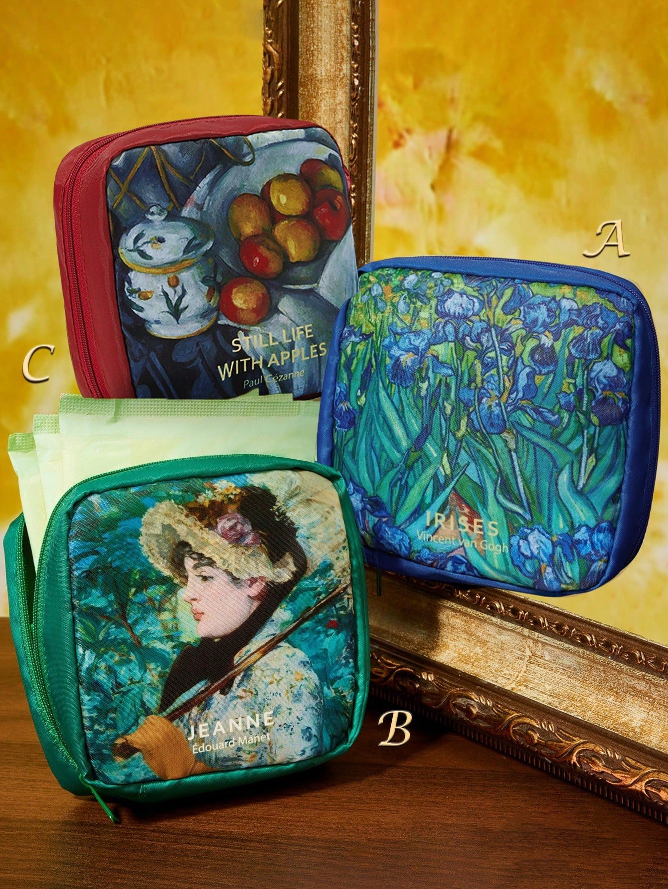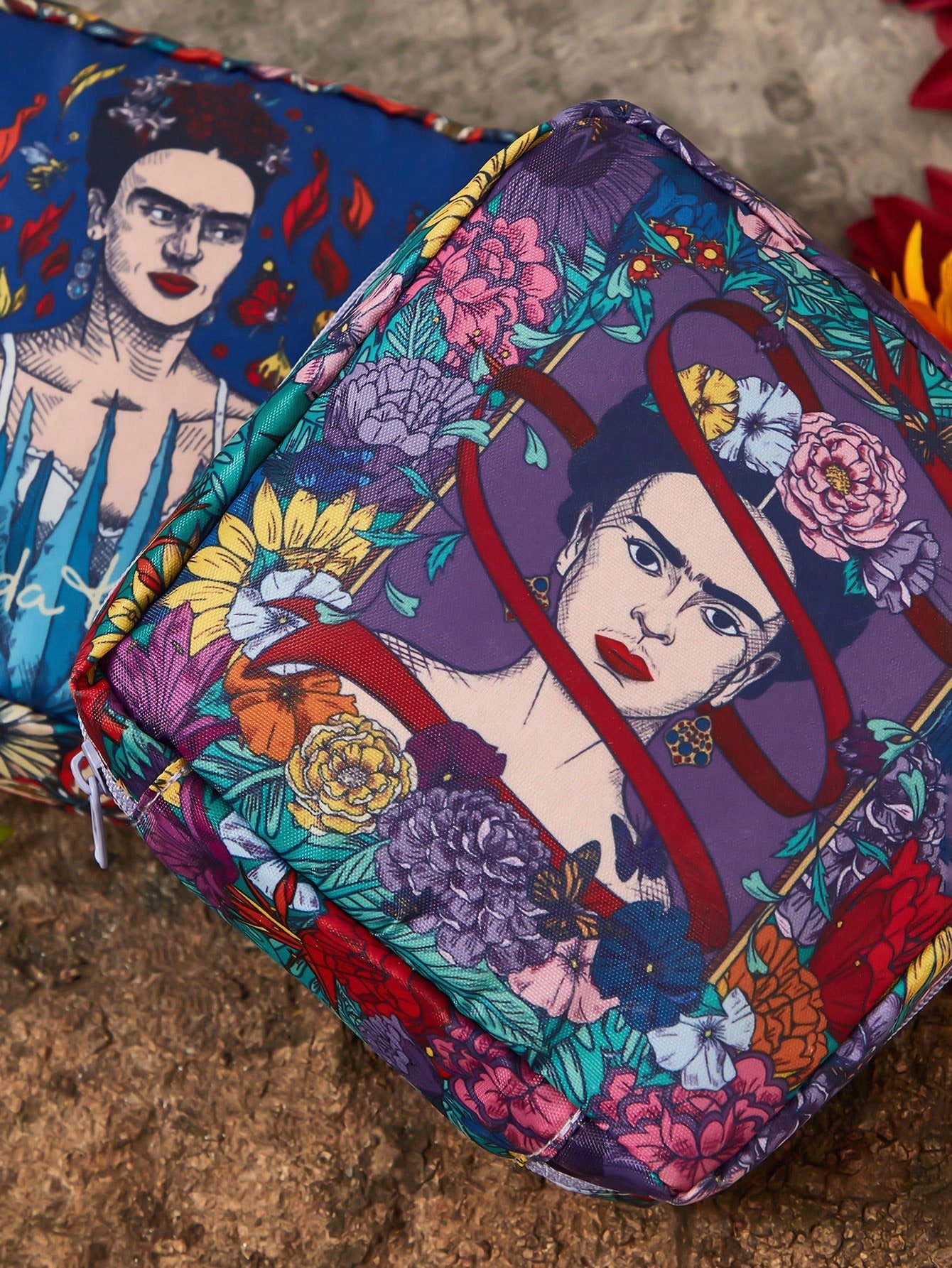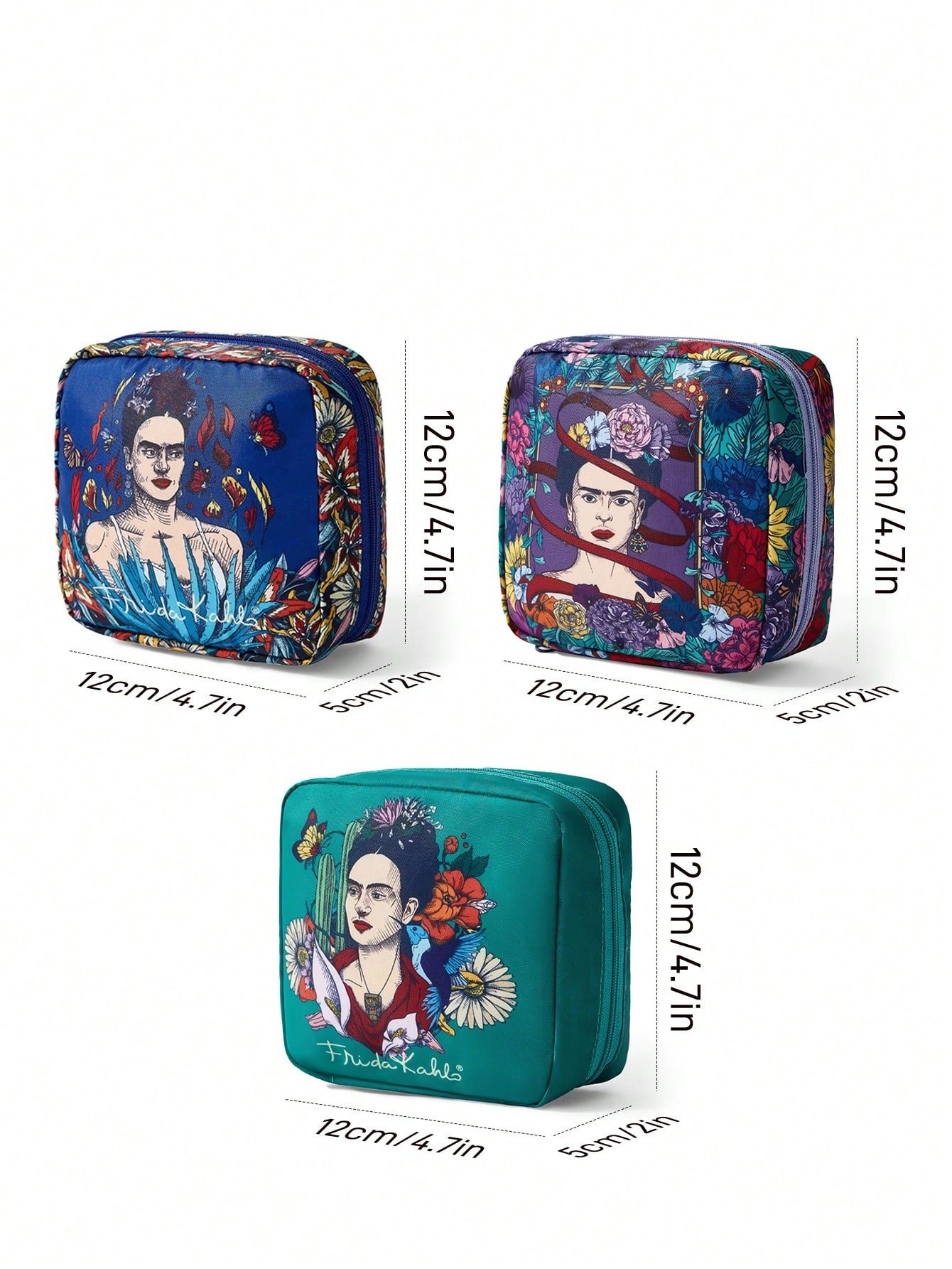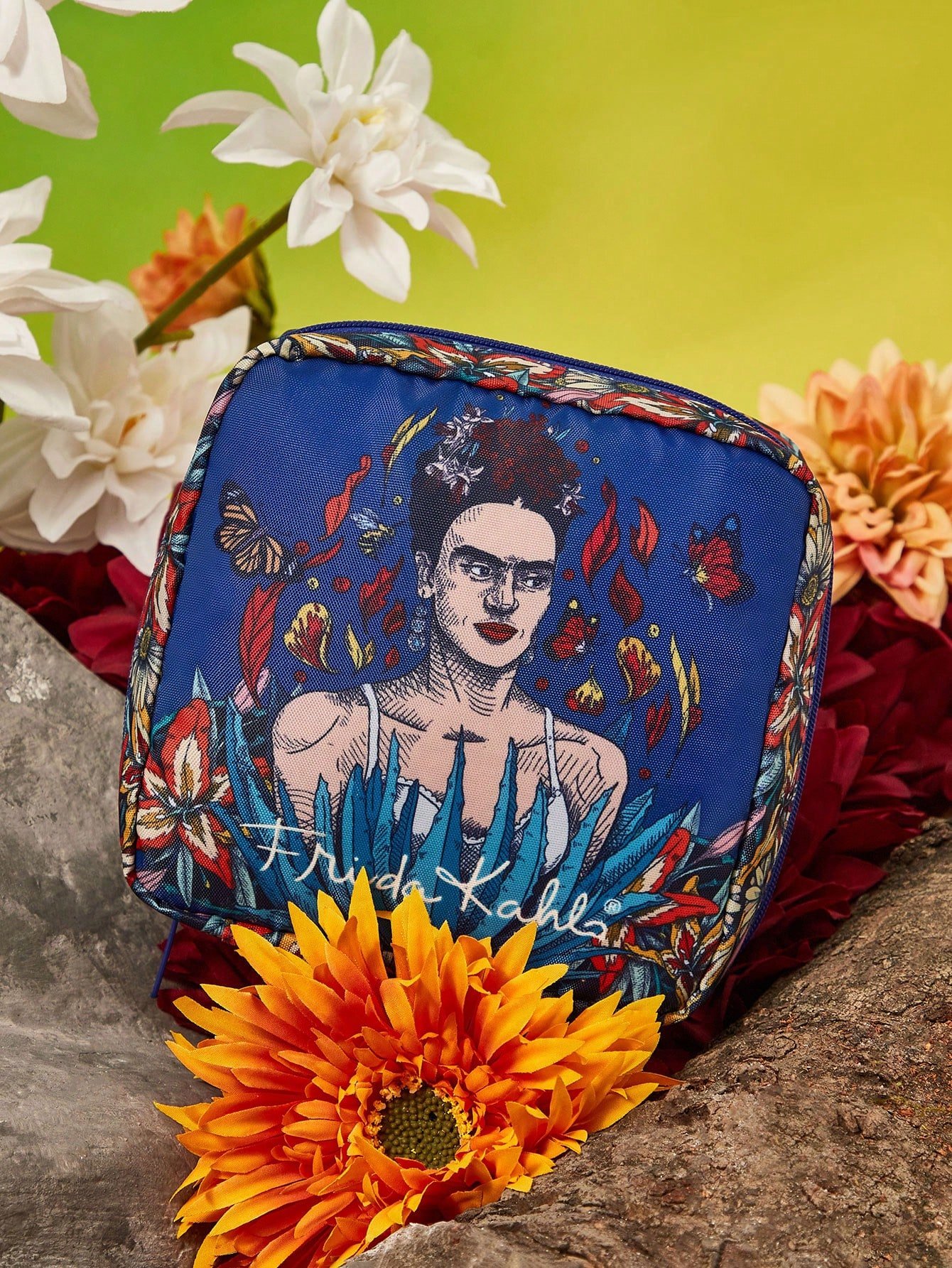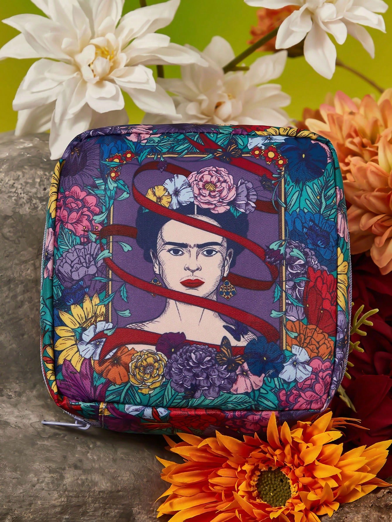 Frida Kahlo X SHEIN 1 db-os művészi virágos és grafikus tárolótáska, használható női higiéniai tárolótáskaként, digitális tárolótáskaként, kis tárgyak tárolótáskájaként, művészi, elegáns