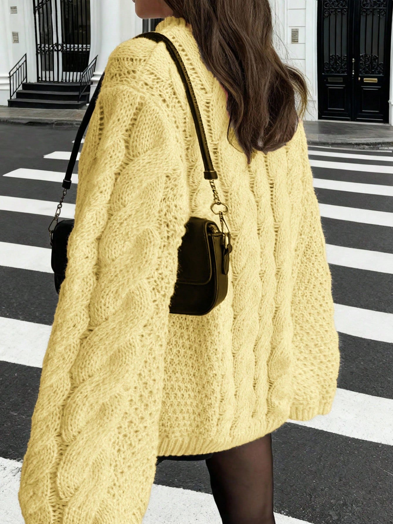 Just Masa női őszi-téli lezser, egyszínű kendermintás, kerek gallérral ellátott, széles ujjú, hosszú ujjú pulóver