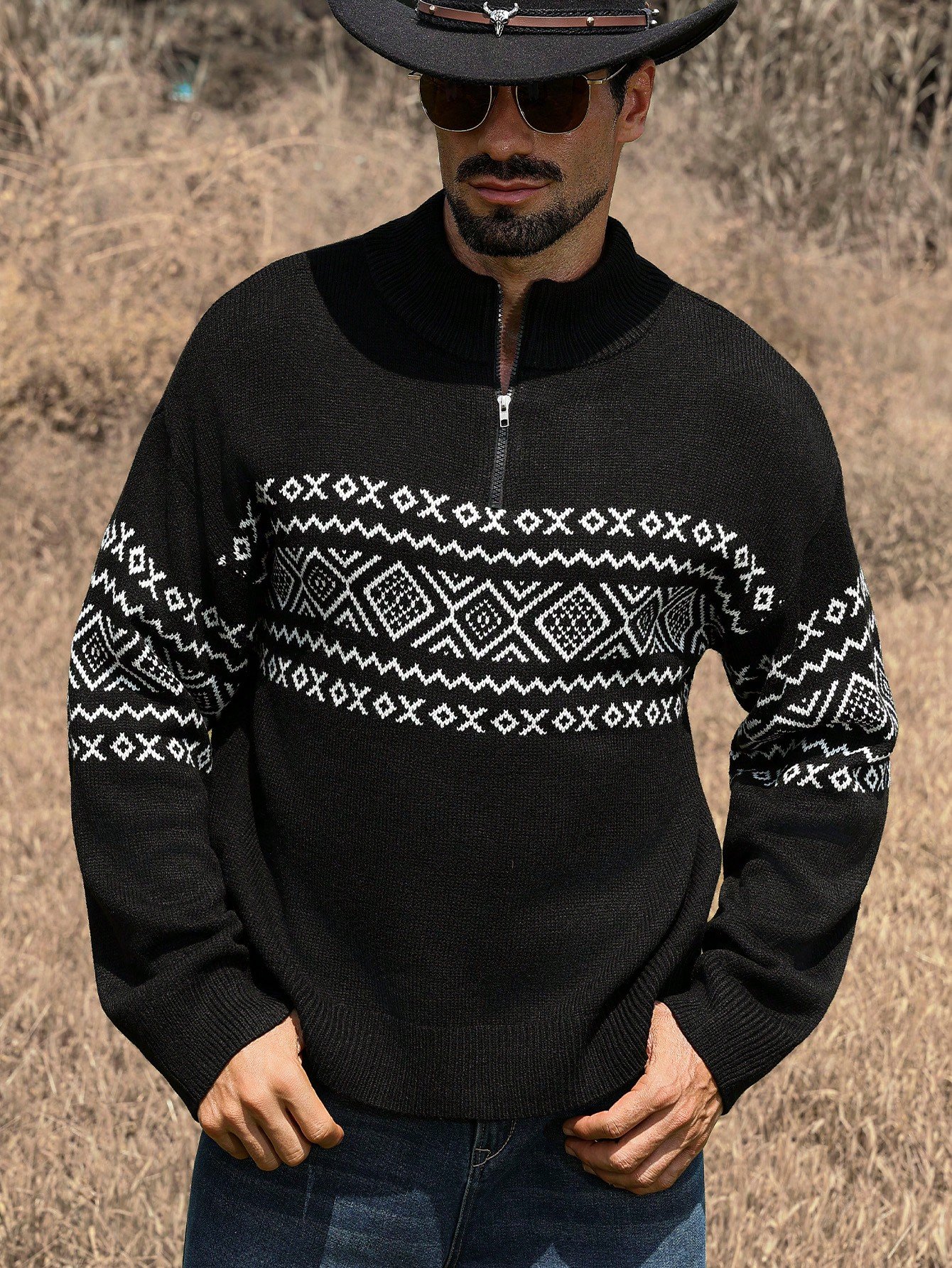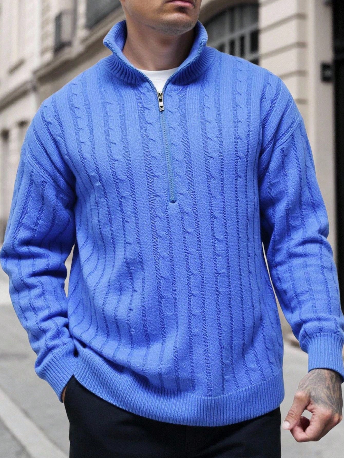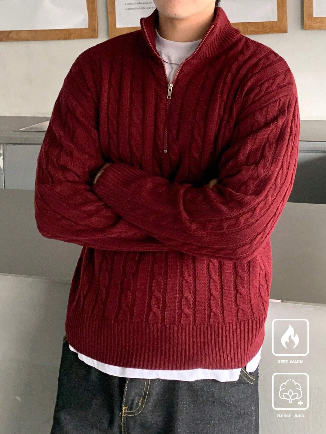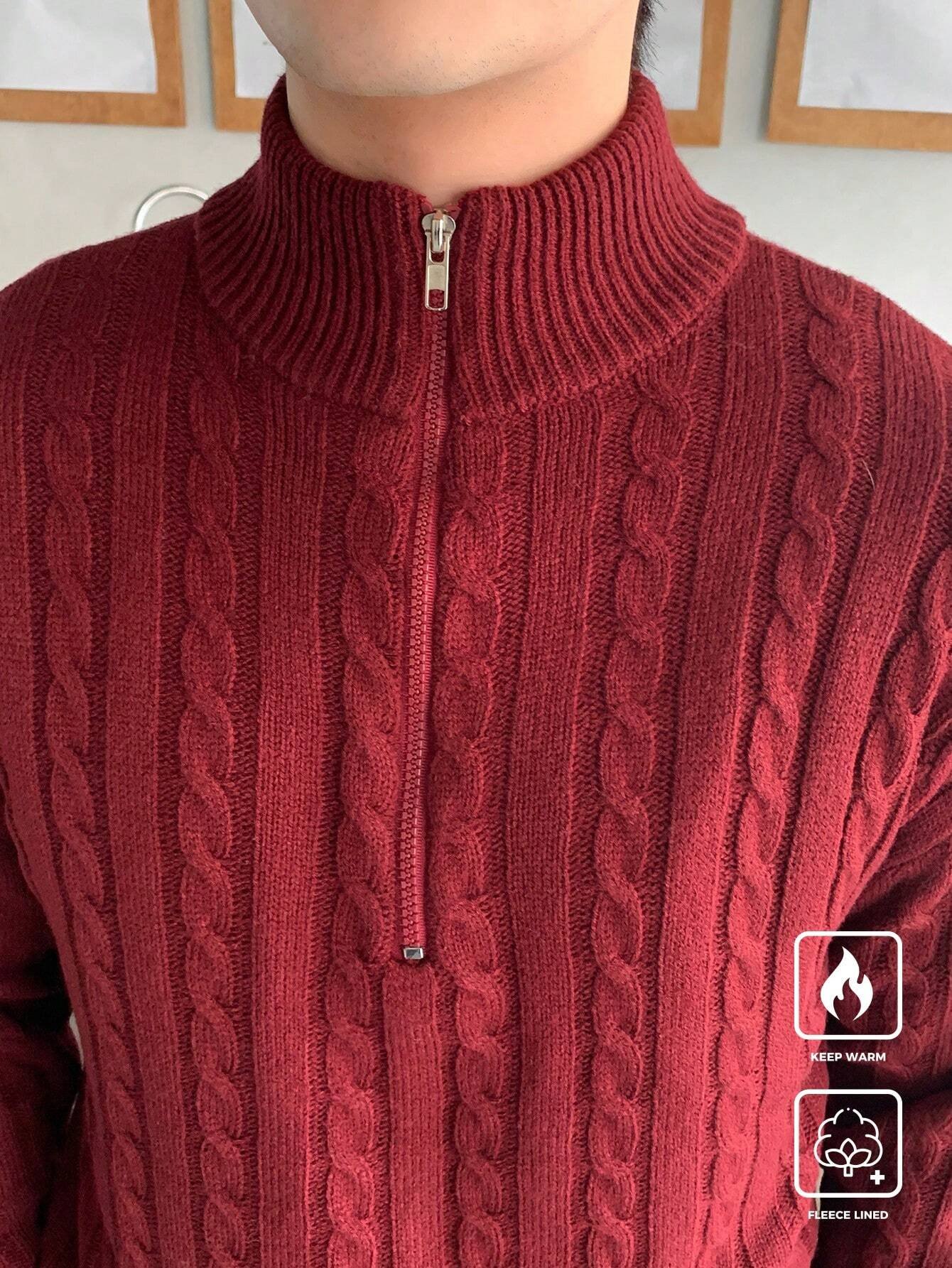 Manfinity CasualKnits Férfi félcipzáras, texturált kötött pulóver, lezser és sokoldalú, hosszú ujjú, férfi piros pulóver, férfi bordó pulóver, férfi kábelkötött pulóver, férfi negyedcipzáras pulóver, férfi polár bélésű pulóver