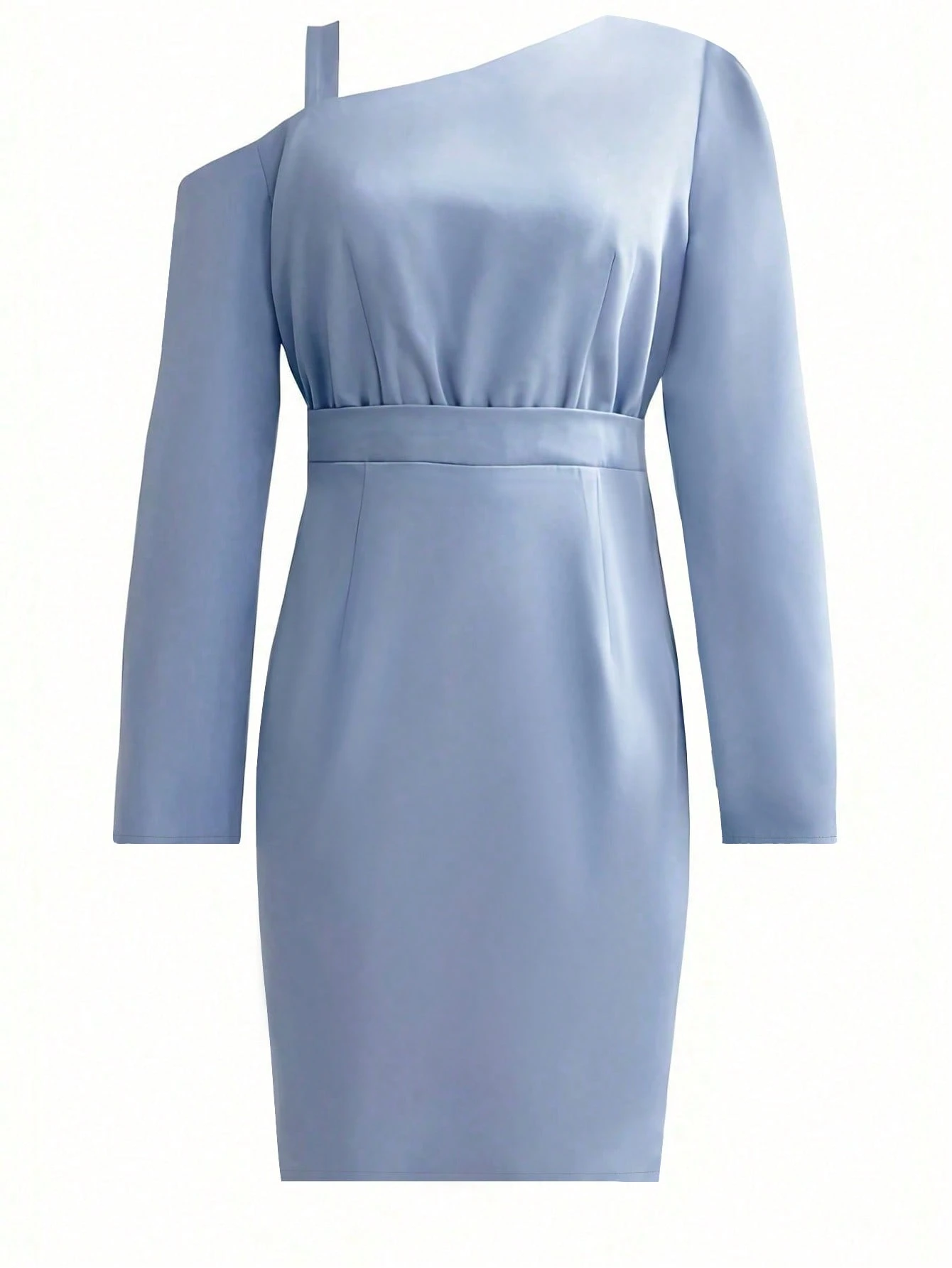 Női aszimmetrikus galléros hosszú ujjú, elegáns egyszínű ruha