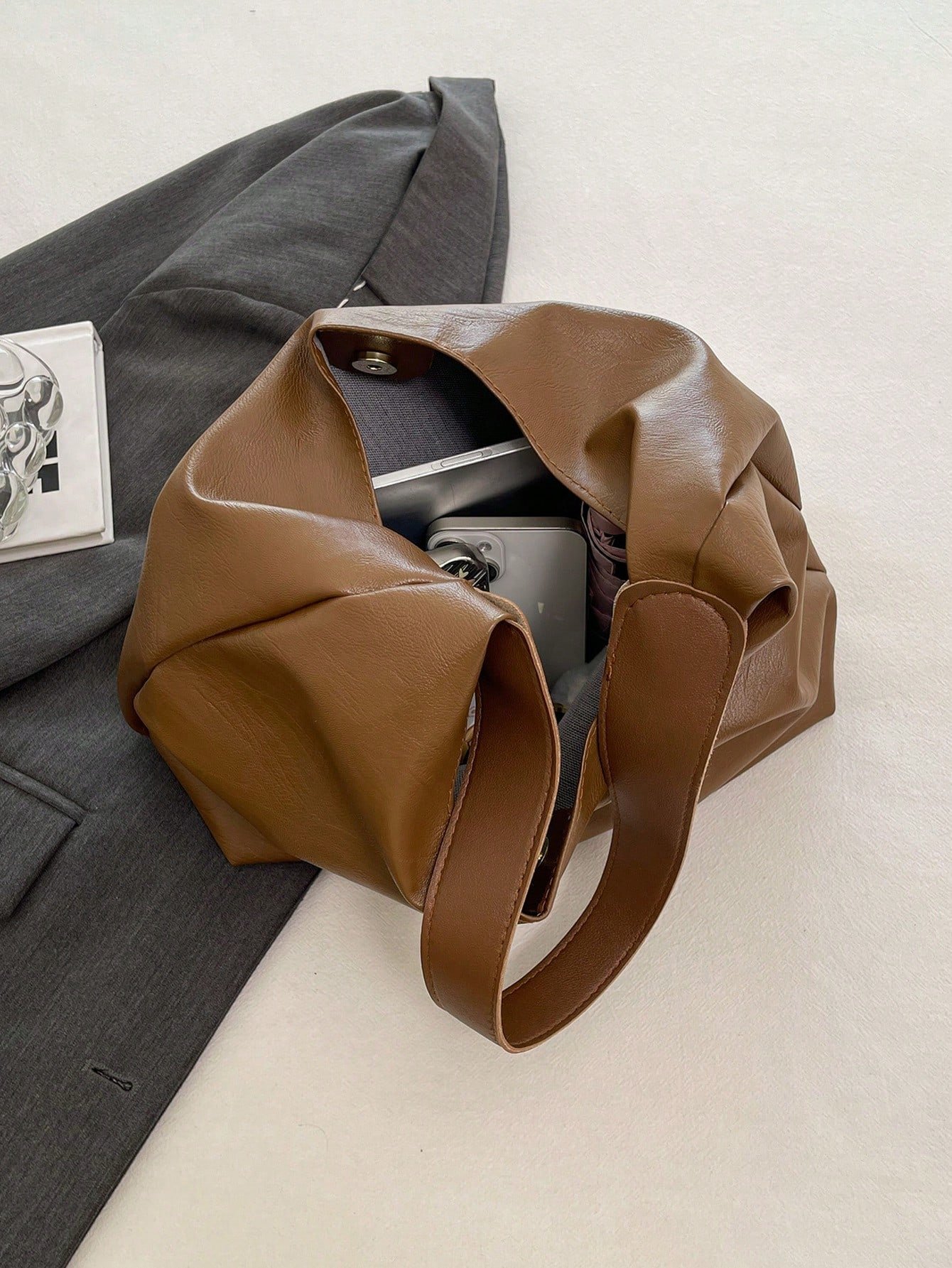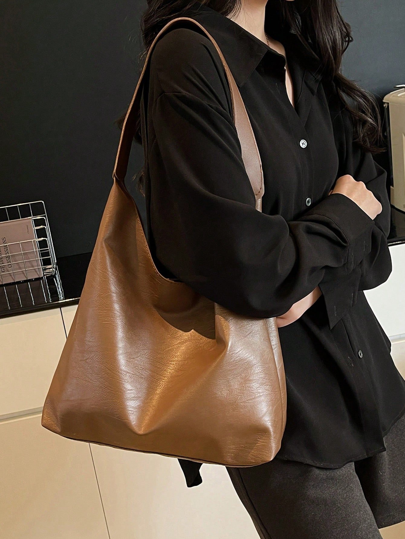 Női divatos, egyszerű, egyszínű PU bőr táska, sokoldalú, sokoldalú napi irodai és osztályos válltáska, új, könnyű, hétköznapi utcai bevásárló táskák, hónaljtáskák, nagy kapacitású kültéri utazási kézitáska.