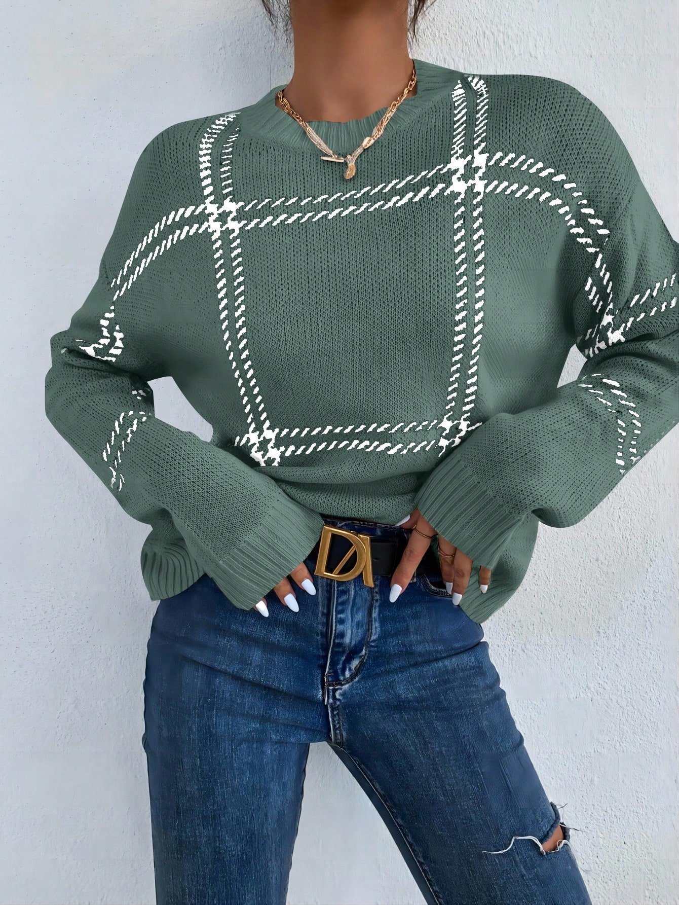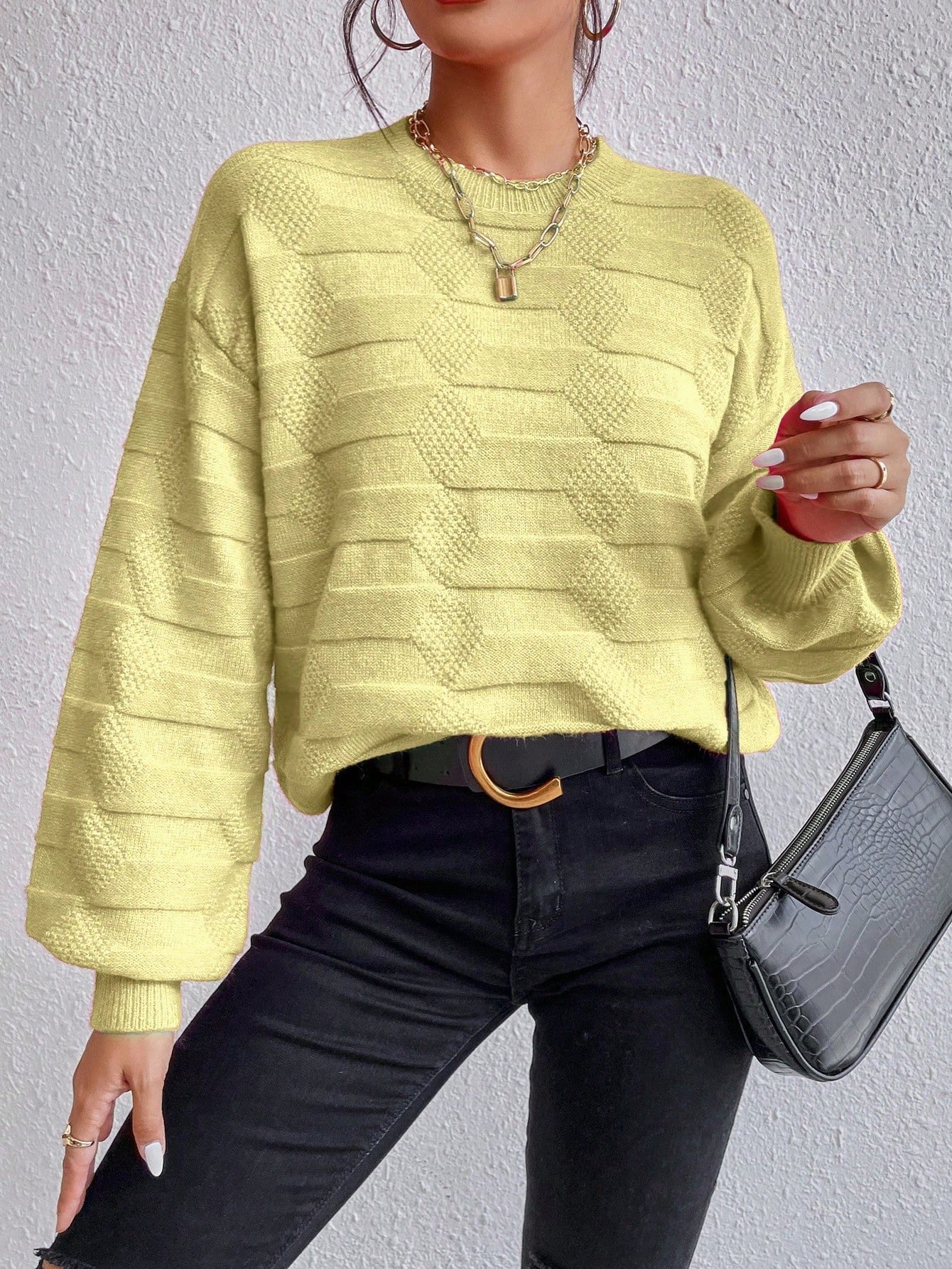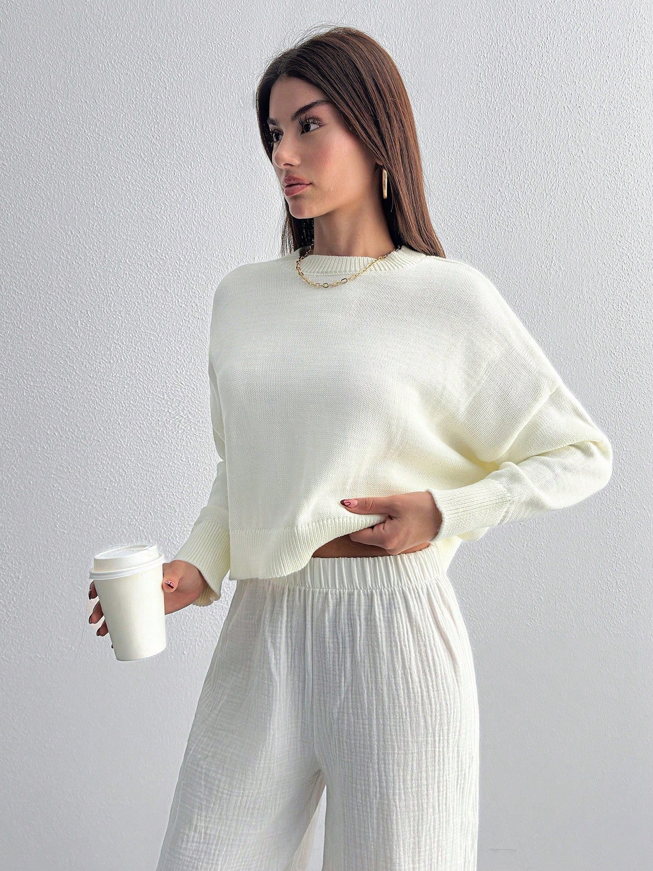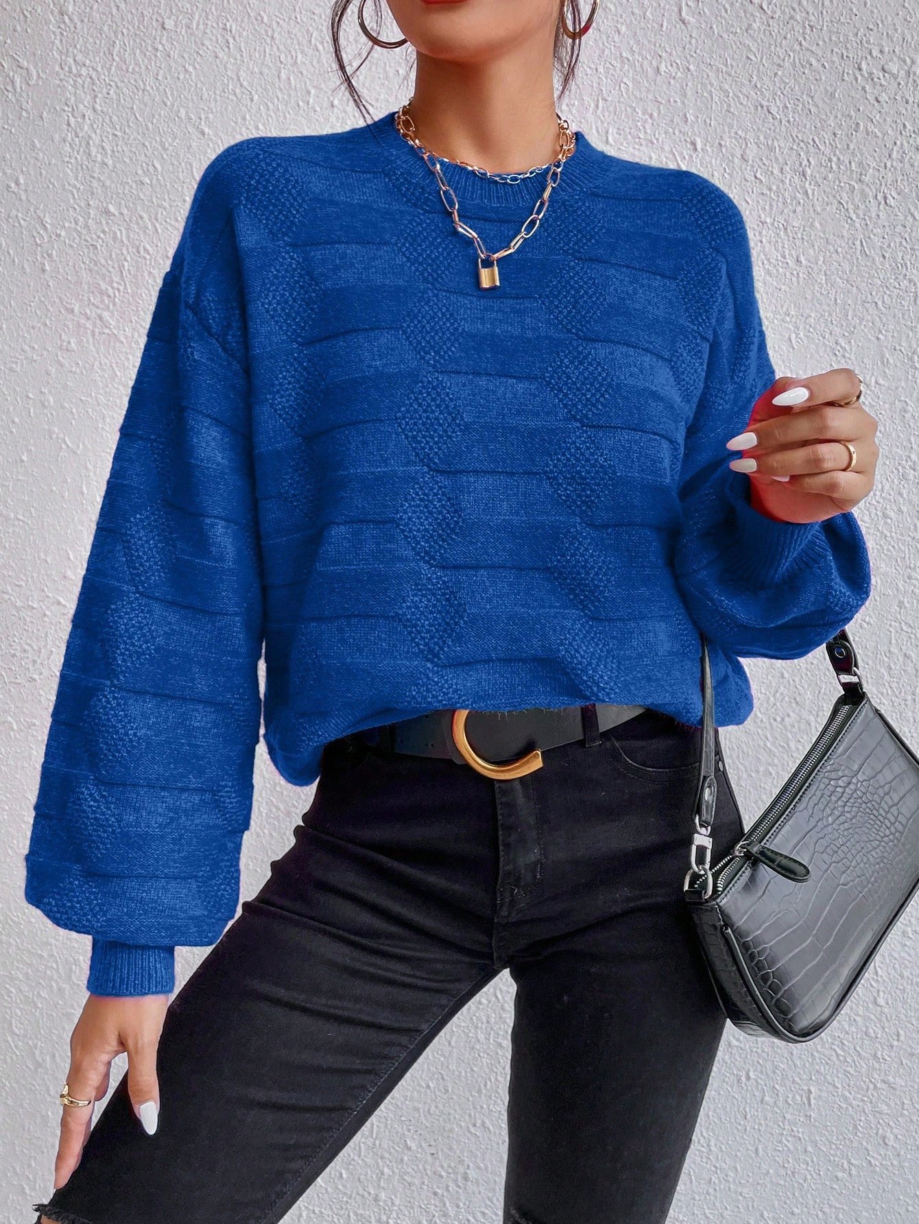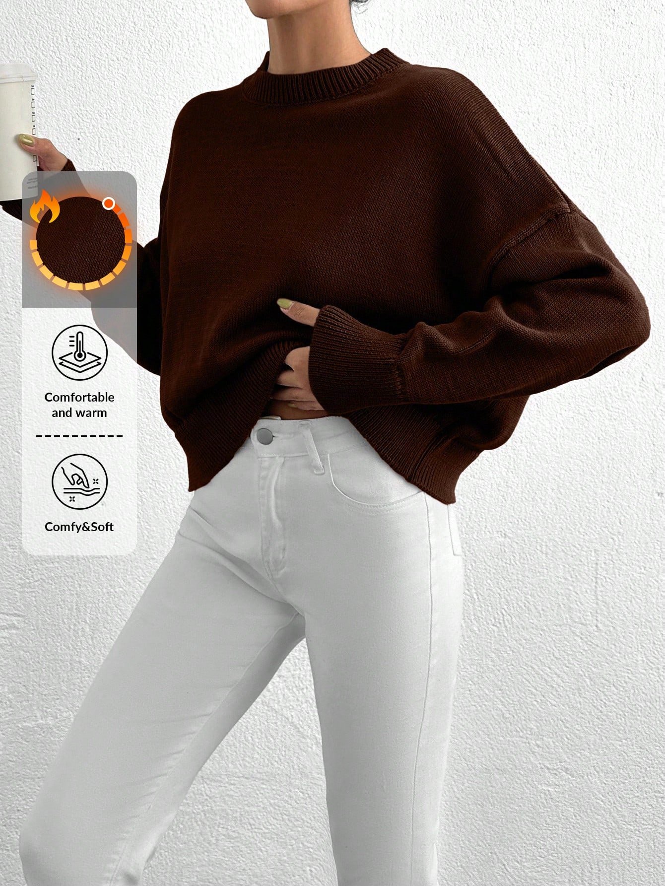 Női egyszínű, vállpántos, hosszú ujjú, kerek nyakú, lezser, túlméretezett pulóver