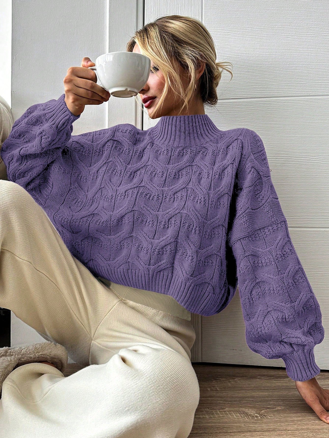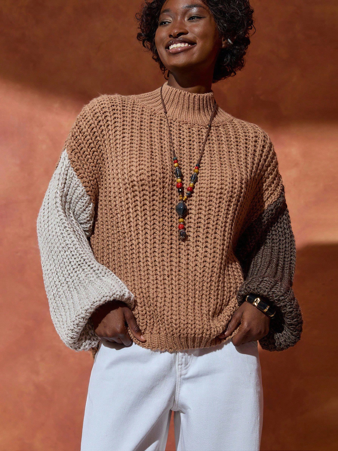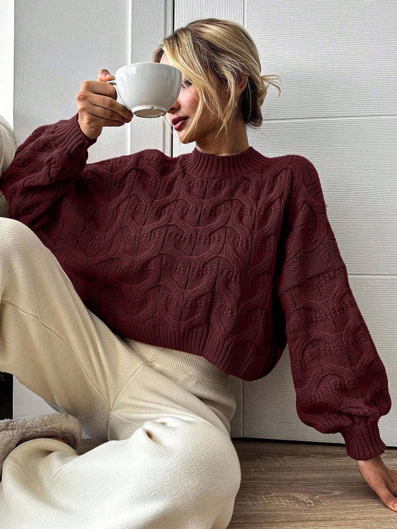 Női lezser egyszínű lámpásujjú pulóver, ősz/tél