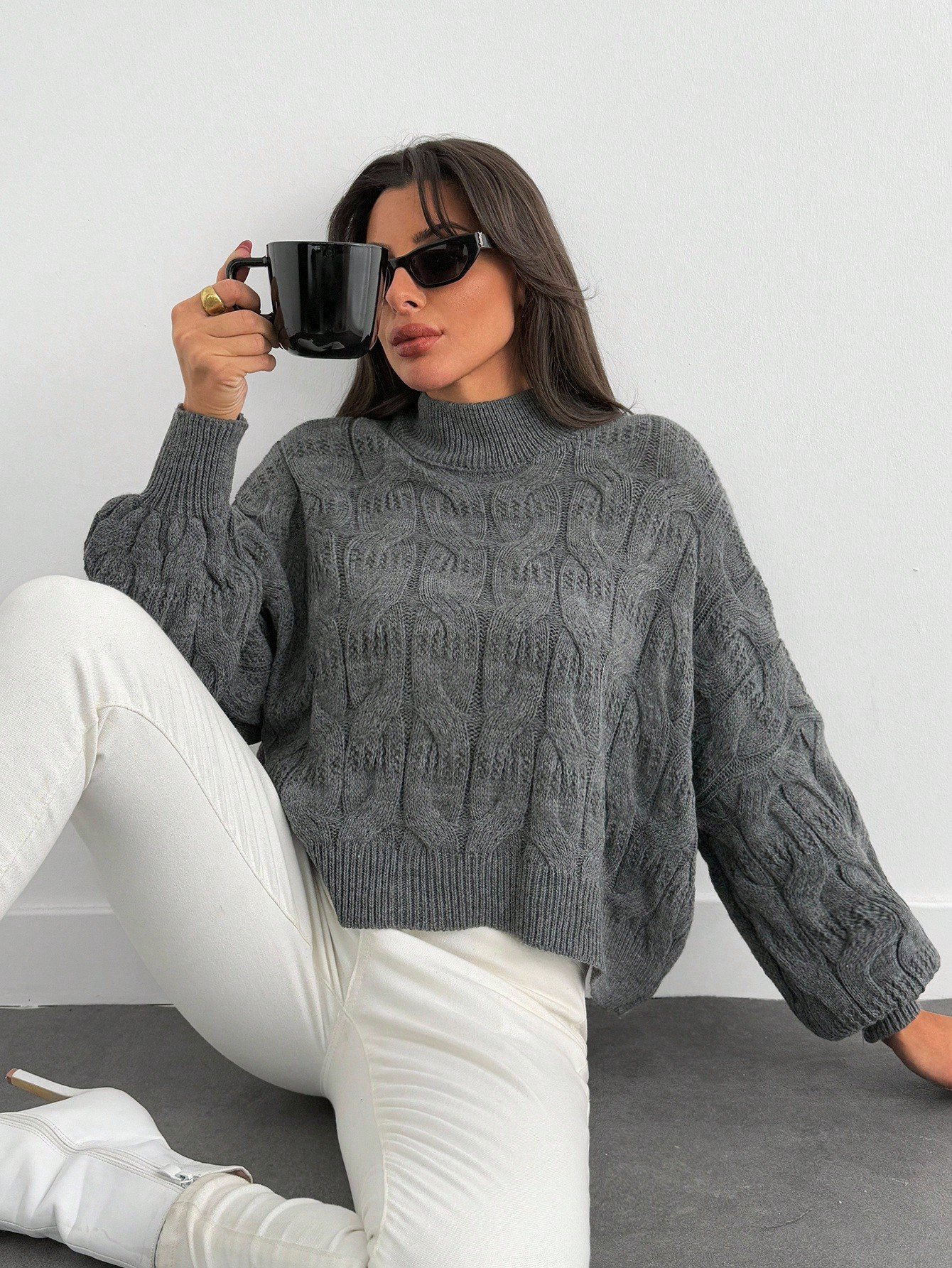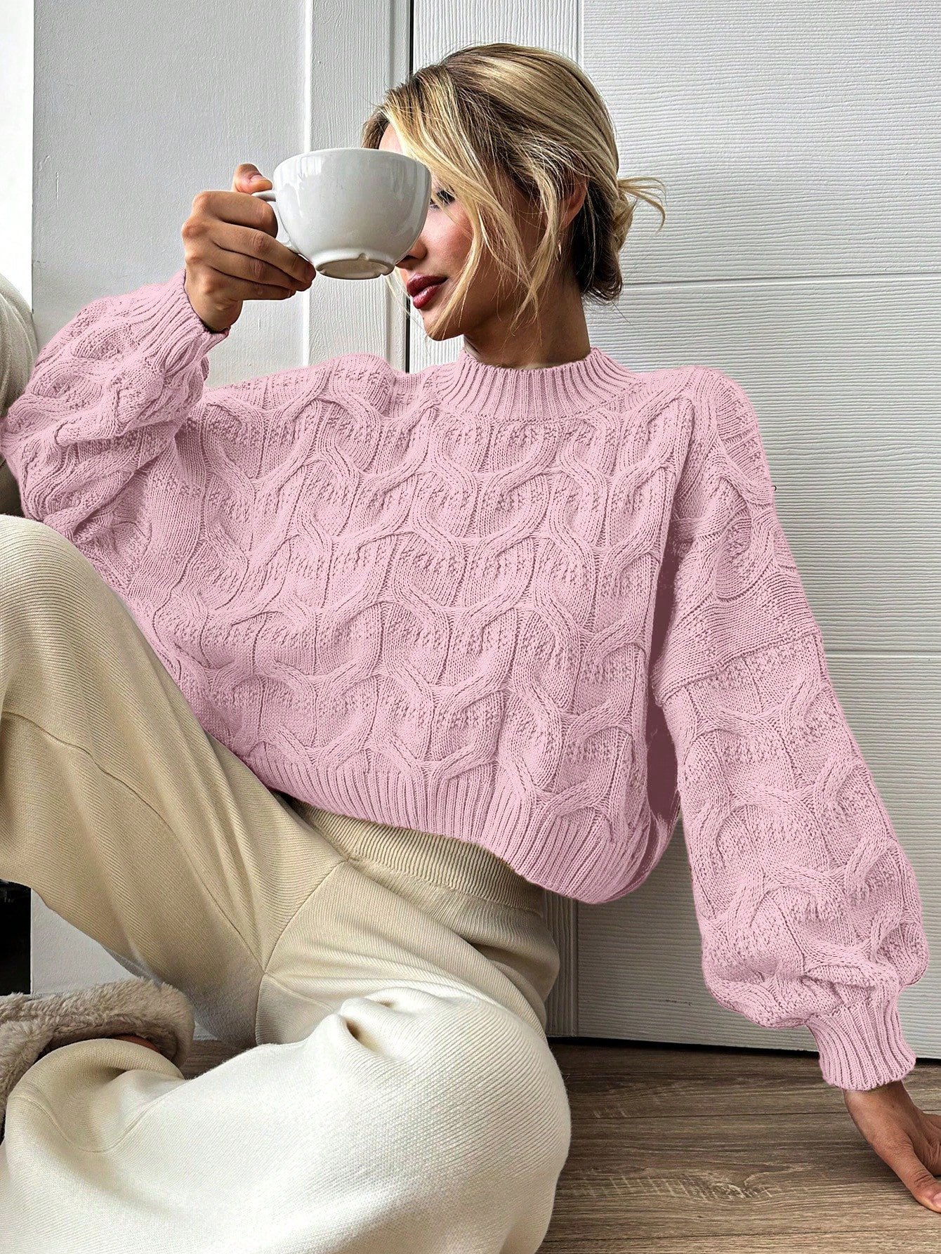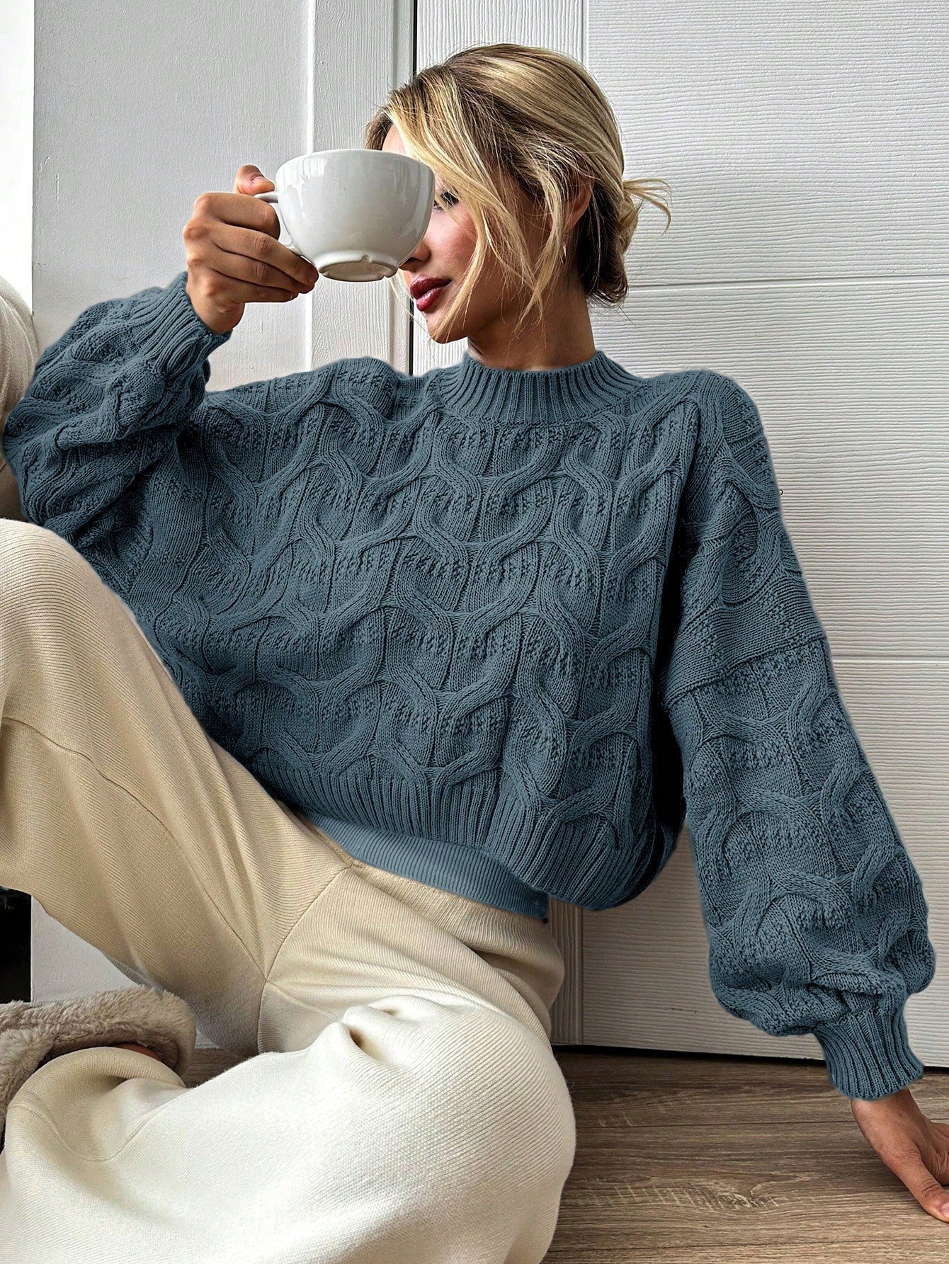 Női lezser egyszínű lámpásujjú pulóver, ősz/tél