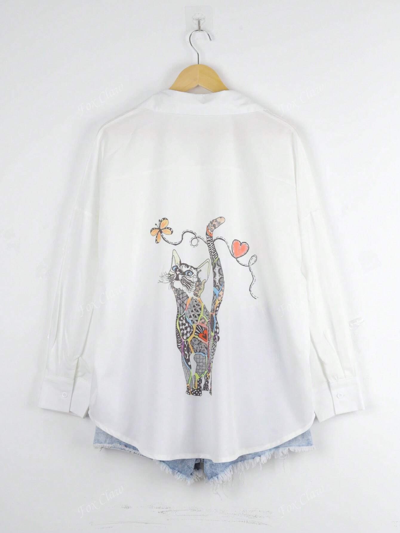 Plusz női cica mintás bő hosszú ing