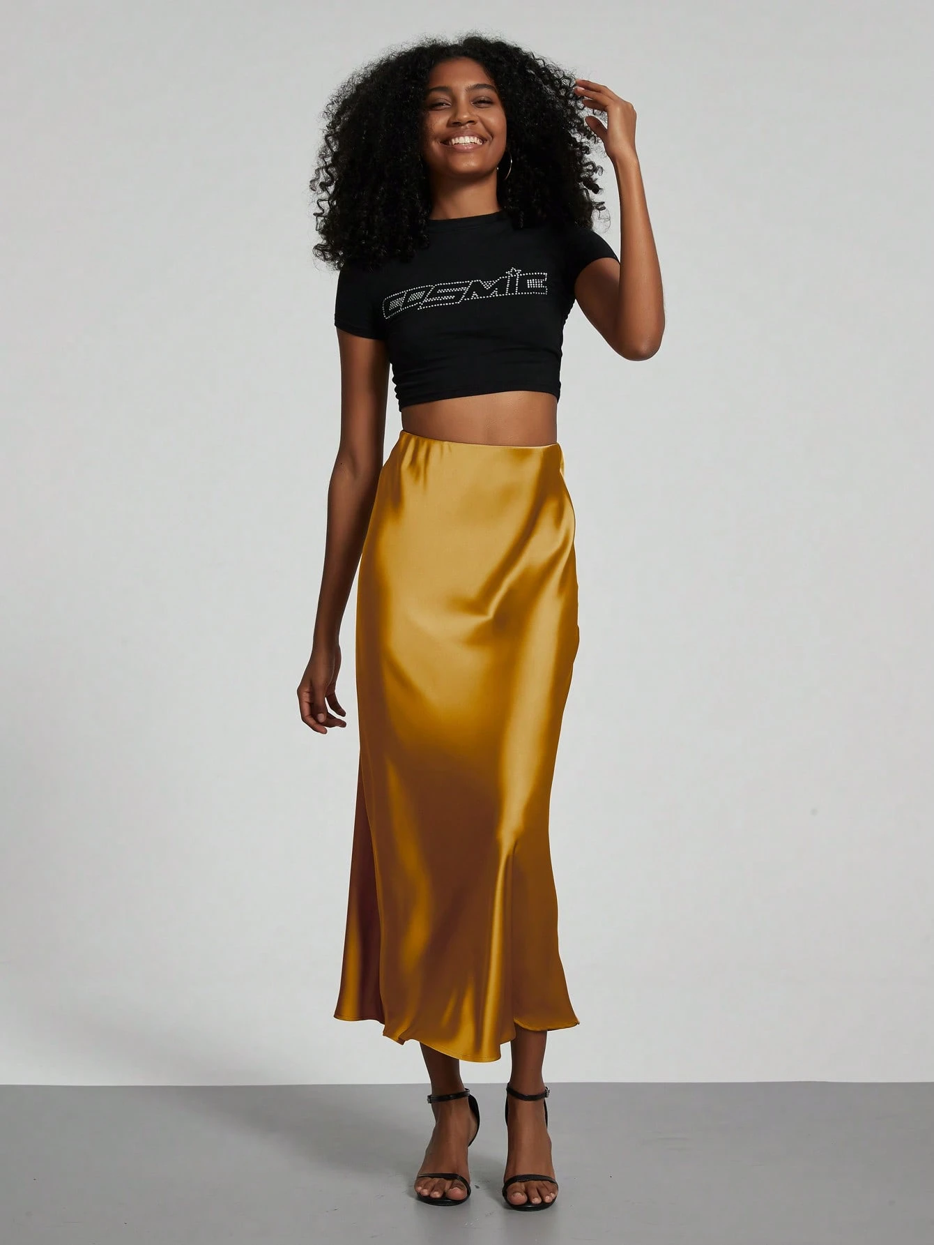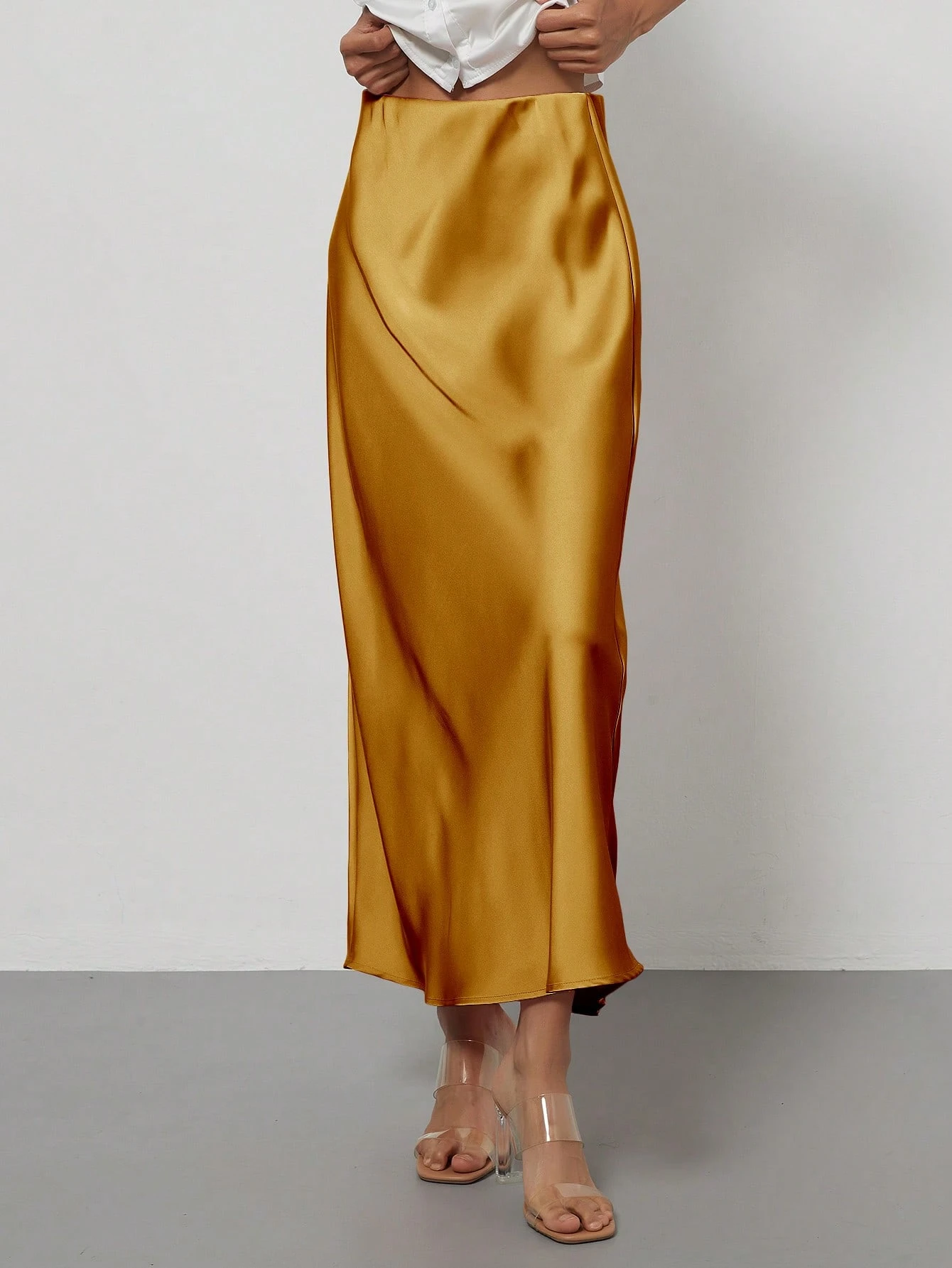 Se-Hore divatos női rugalmas szatén maxi szoknya, minden évszakra alkalmas