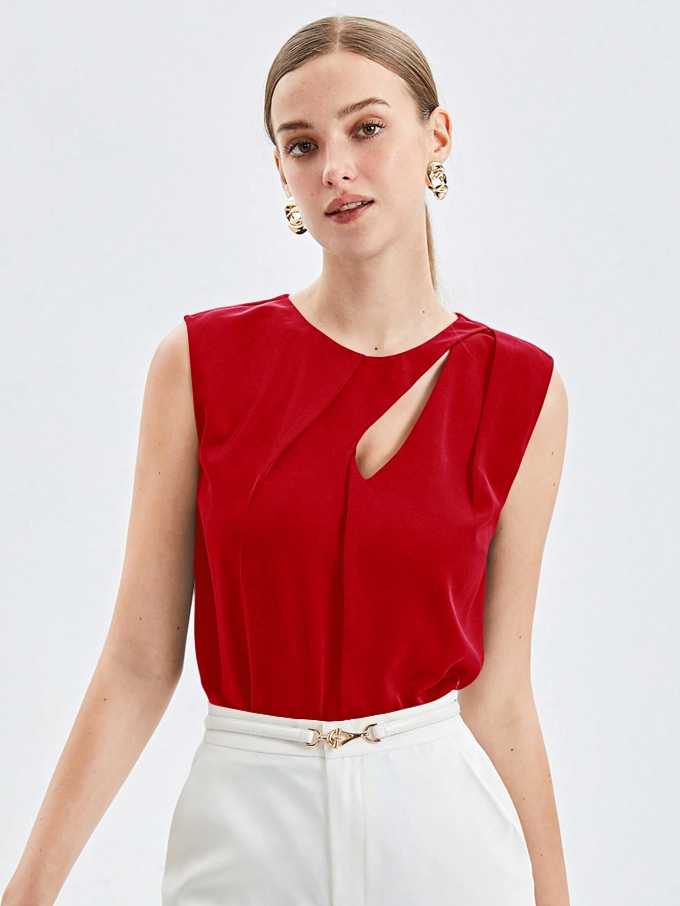 SHEIN BIZwear Női, egyszínű, üreges, kerek nyakú felső