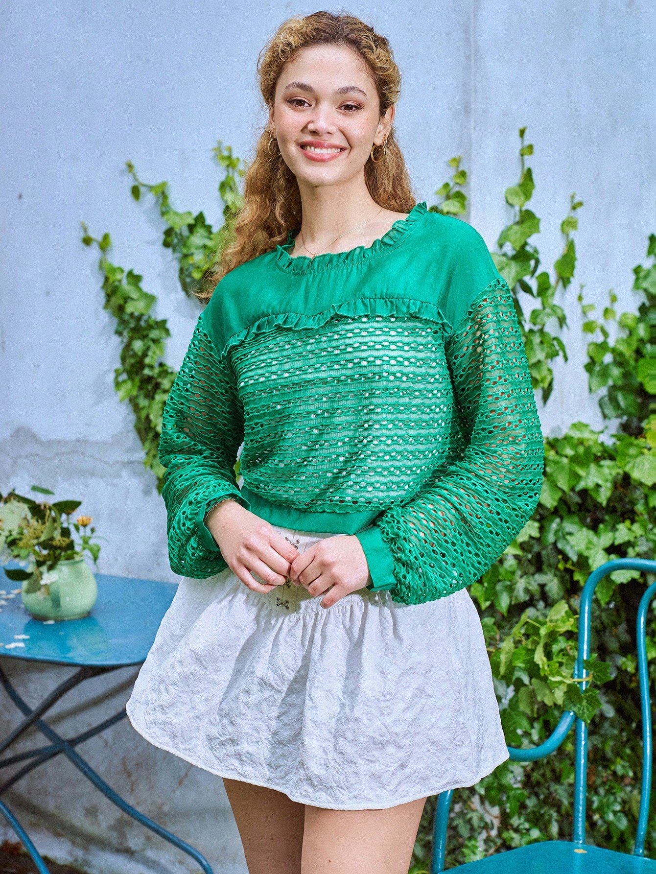 SHEIN Frill Trim Lantern Sleeve üreges blúz