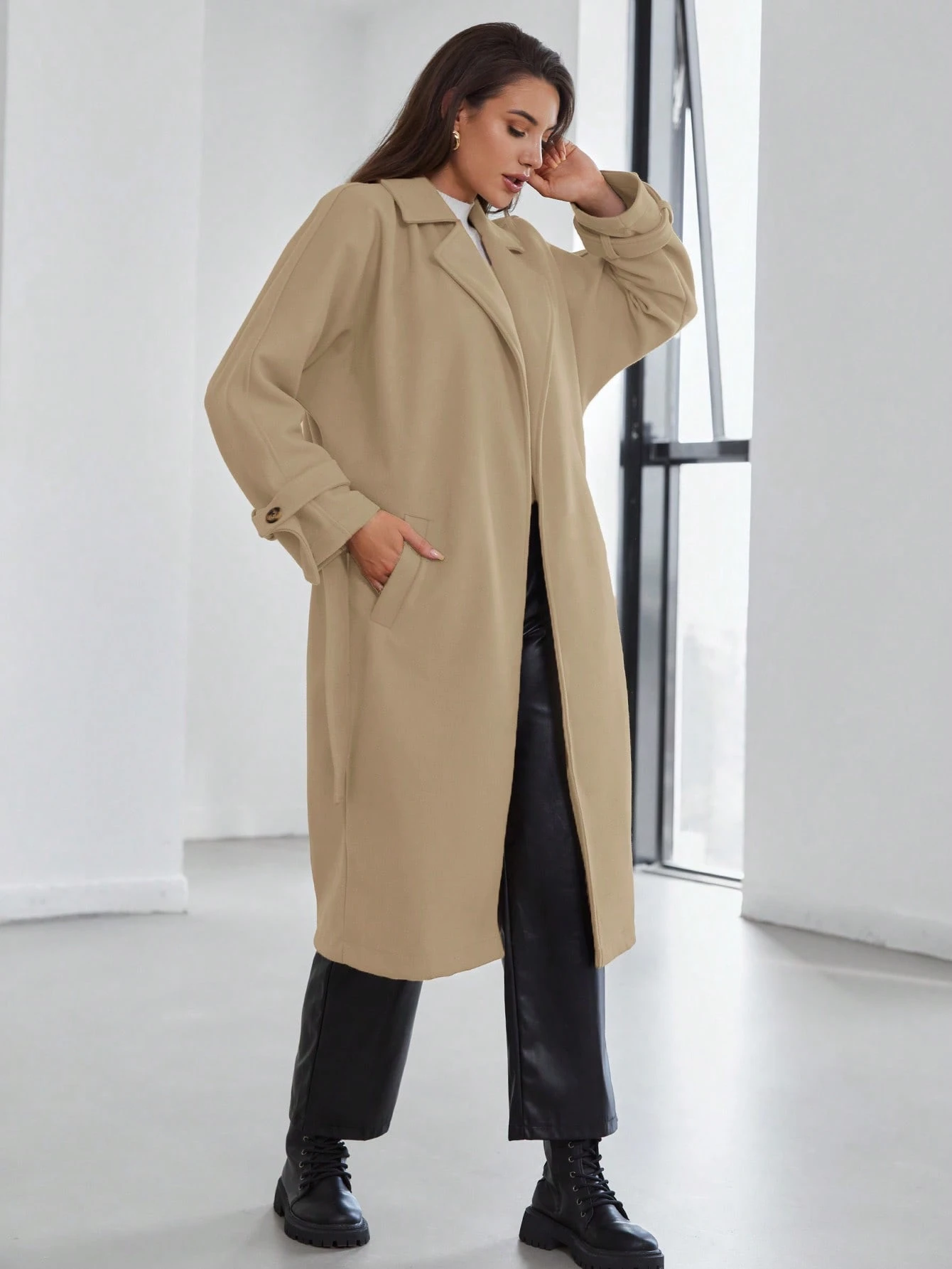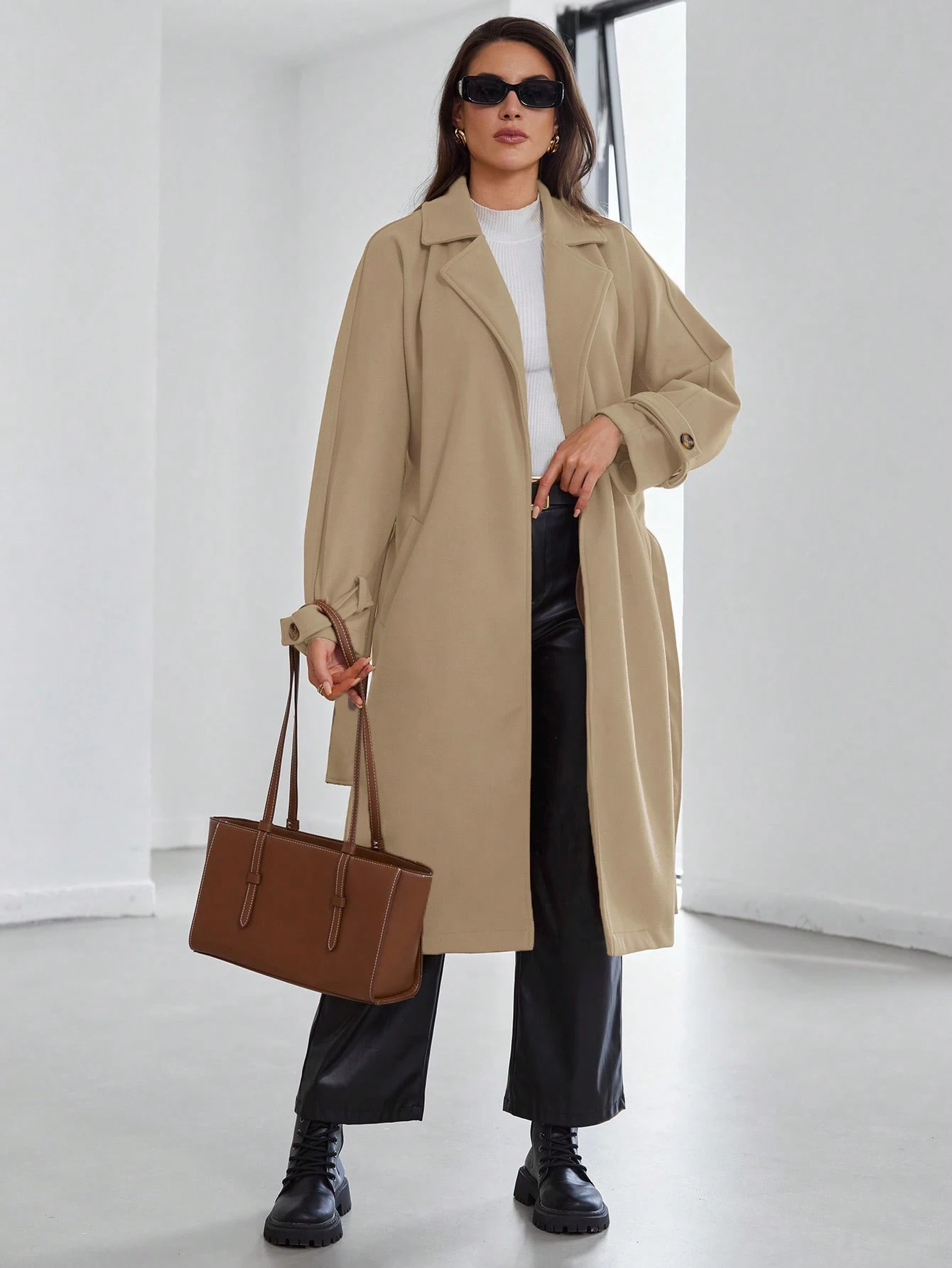 SHEIN Nyitott elülső hajtóka nyakú, öves kabát