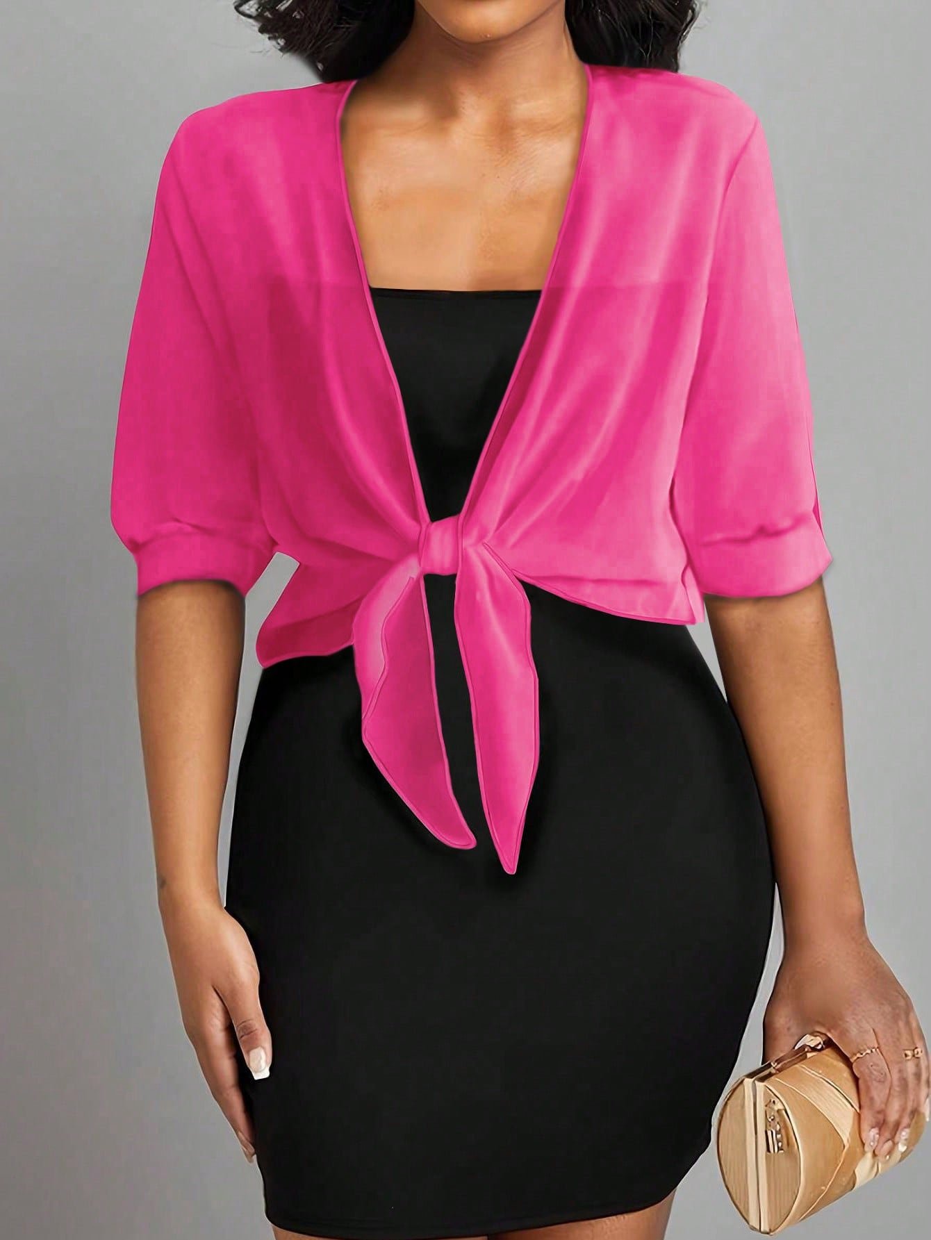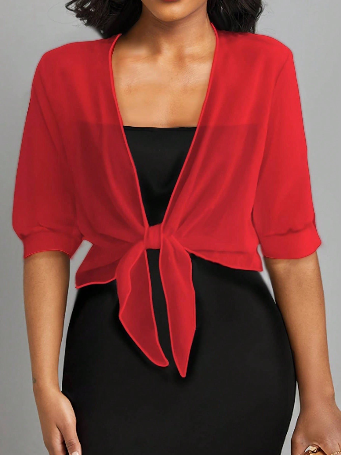 Sifon kardigán nyakkendő női egyszínű elülső csomós ing nyári vakáció Cover Up Beach ruhák tavaszi alkalmi blúz könnyű, rövid kendő felső