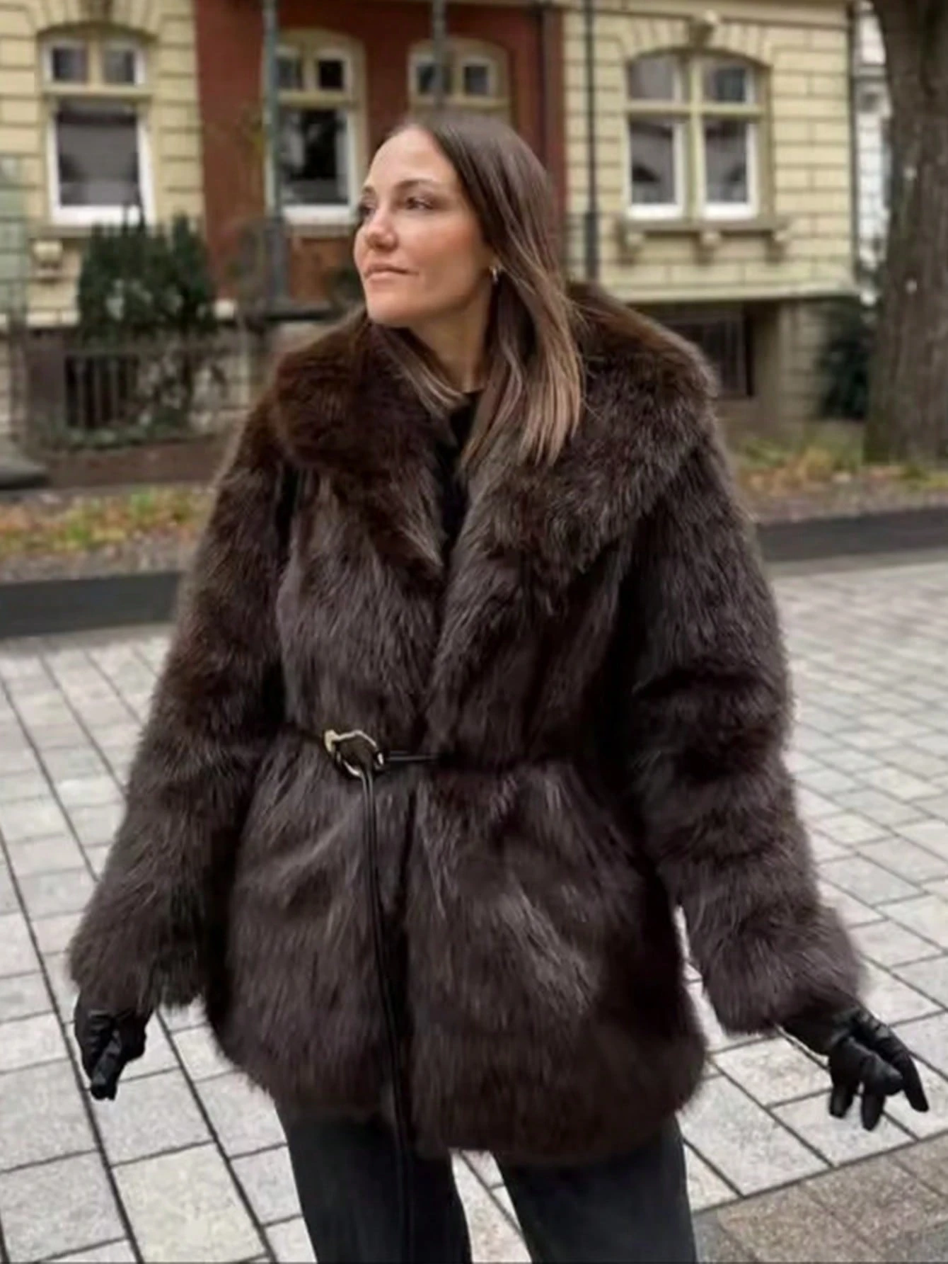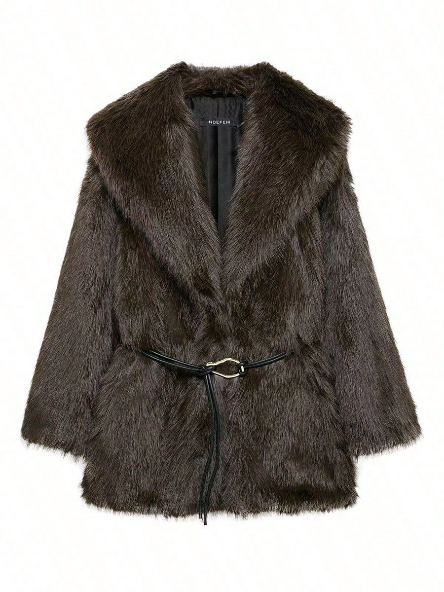 téli meleg női műszőrme kabát divatos lehajtható gallérral ellátott hosszú ujjú dzseki női kabátok övvel, laza, puha felsőruházat
