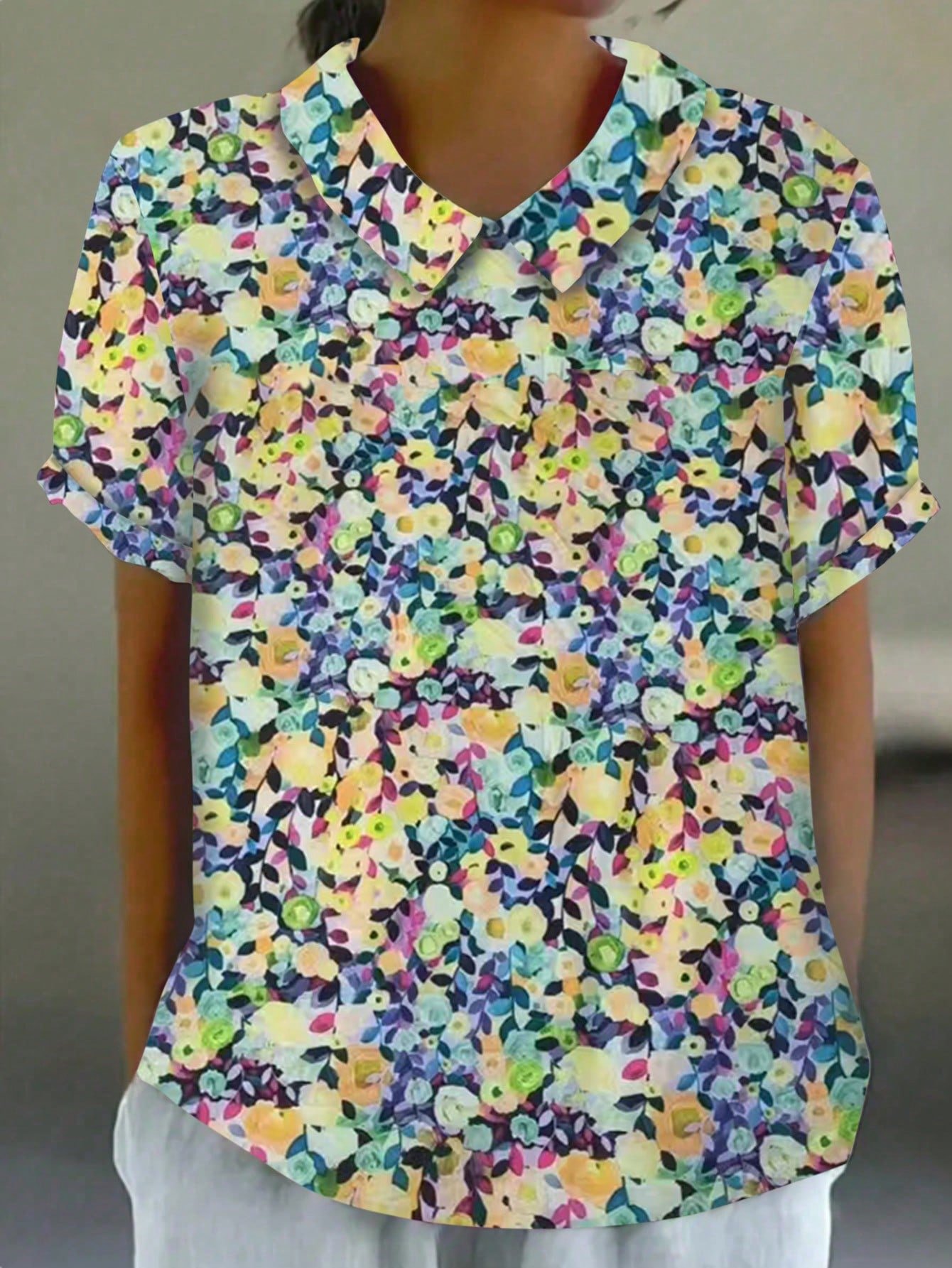 Virágmintás poliészter női, teljes testre szabott, hasított ingblúz, globális